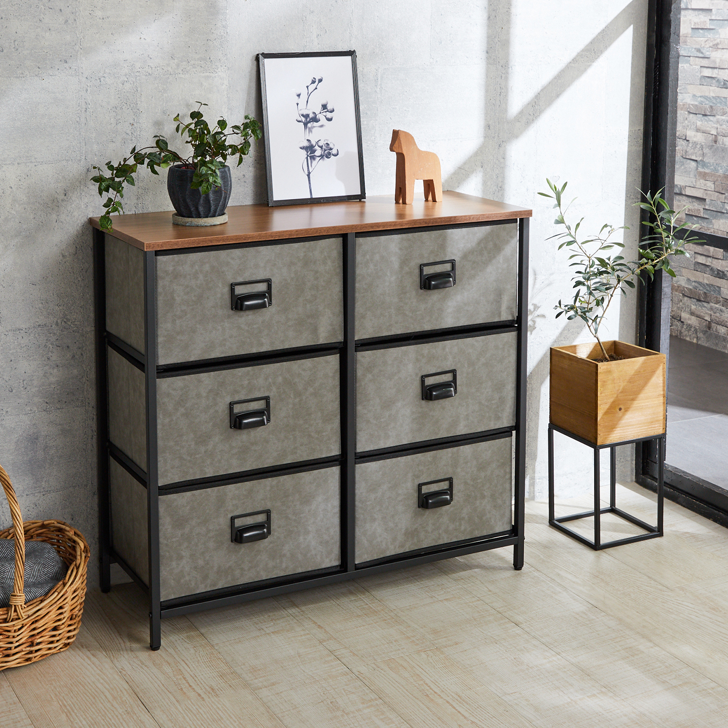 石目調のファブリックチェスト