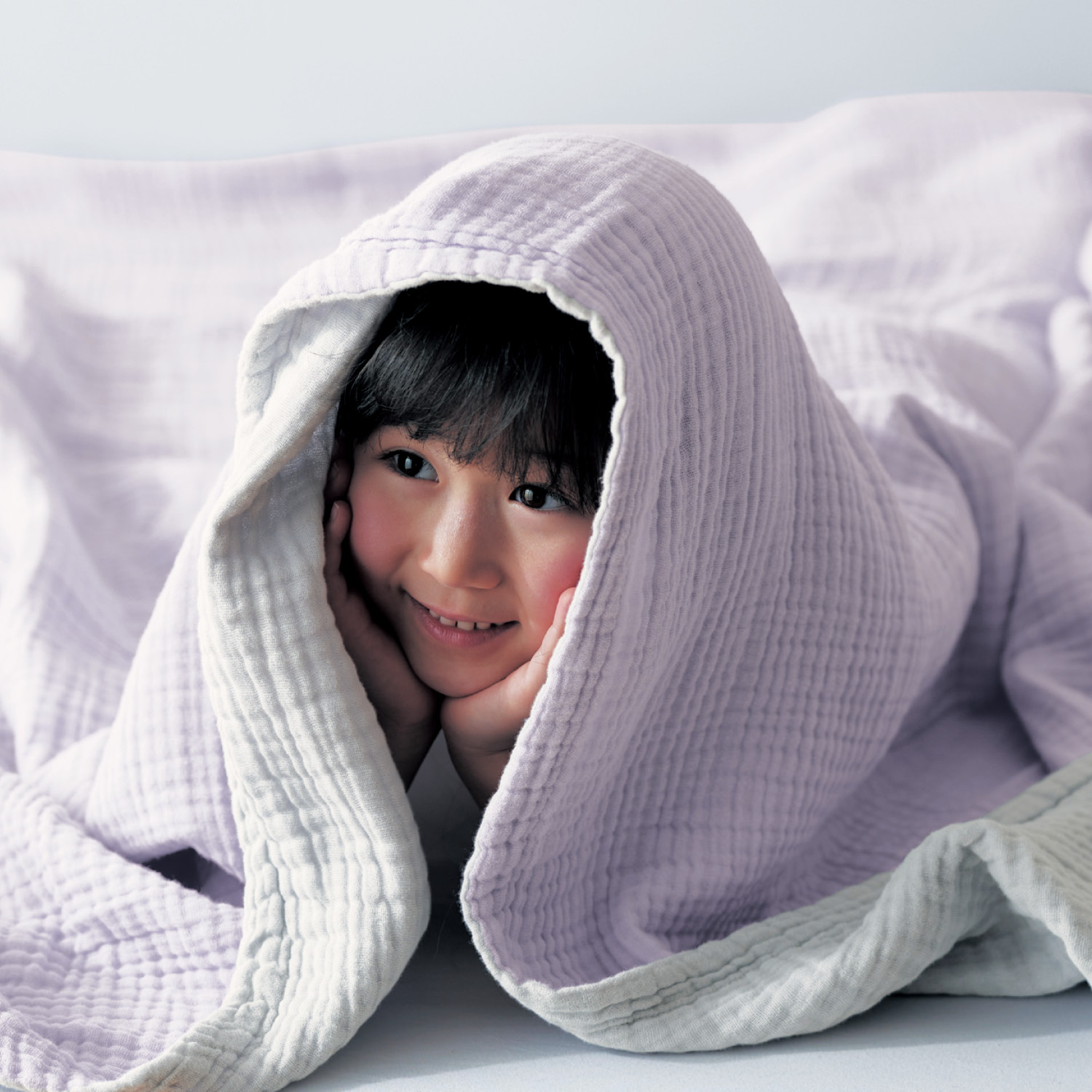洗うほどにふっくらボリュームが増す8重ガーゼのケット愛知県蒲郡市で丁寧に作られた日本製ガーゼはやさしい肌ざわりの綿100%素材たっぷり空気を含んでいるから、保温性があって暖かい一枚で肌布団として、寒くなったら毛布代わりにも。オールシーズン活躍します。ボリュームたっぷりなのに通気性がよく、洗濯しても乾きやすいガーゼの気持ちよさを存分に味わえる8重ガーゼのケットが登場。毎日肌に触れるものは安心できるものでなければという思いから日本製にこだわりました。8重ガーゼの気持ちよさに包まれて眠れば、朝を気持ちよく迎えられるはずです。)