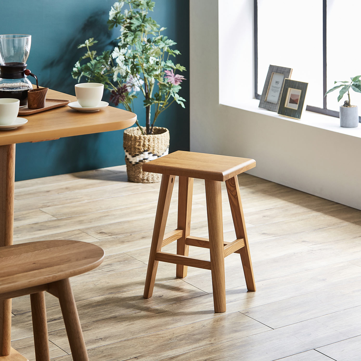 北欧シンプル 小さいテーブルとしても使えるスツールが便利