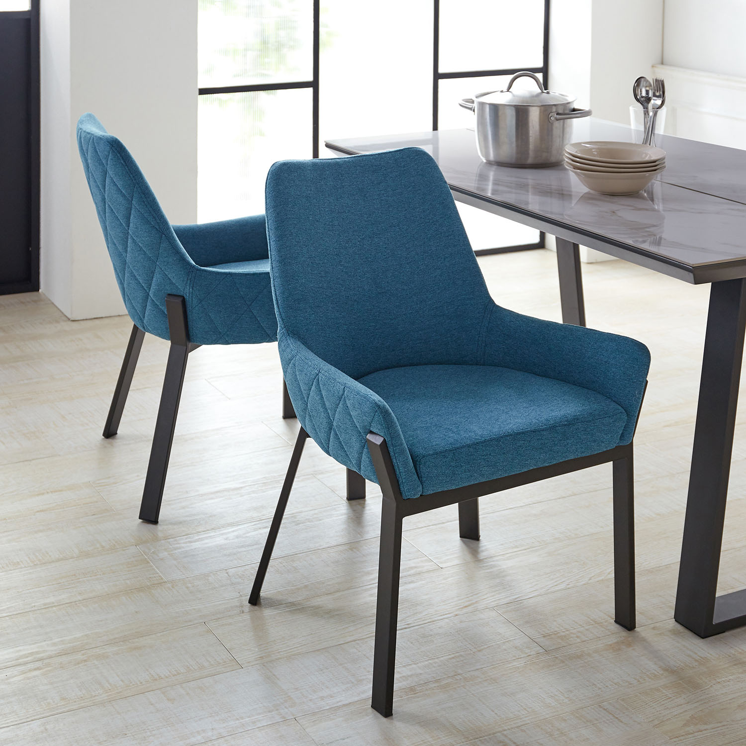 ファブリックとスチール脚の組み合わせが新鮮モダンな印象のダイニングチェア)