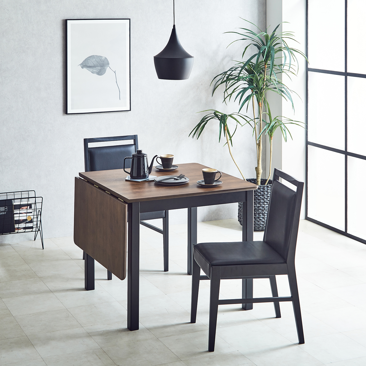 天板と脚がツートンカラーがモダンでおしゃれなダイニングテーブルです天板を横にスライドさせる仕様で、簡単にサイズを変えられます。普段は小さく場所をとらず、お引越しの多いご家庭にも安心必要な時は天板を拡張して、色々なシーンで大活躍します。