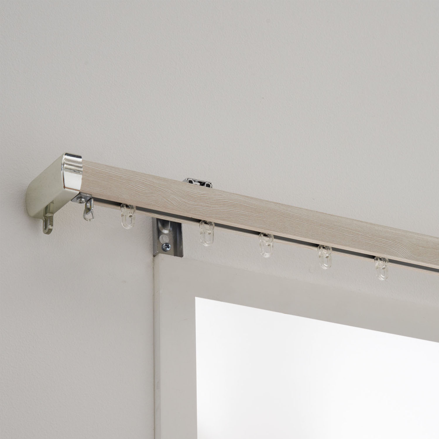 長さが調節できるサイドカバー付き木目調カーテンレール