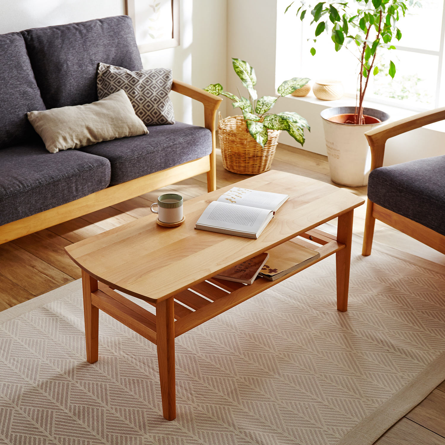 アルダー材を贅沢に使用した棚付きリビングローテーブル