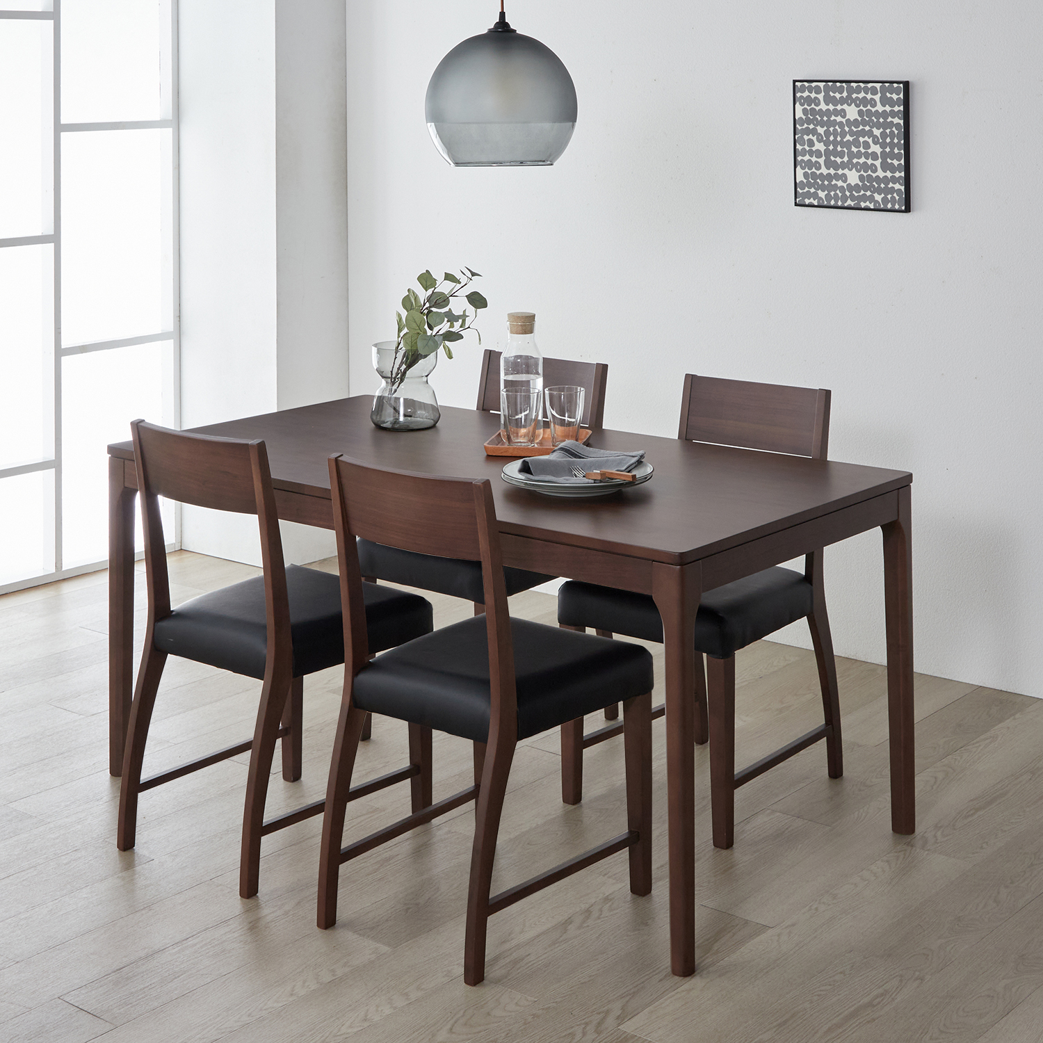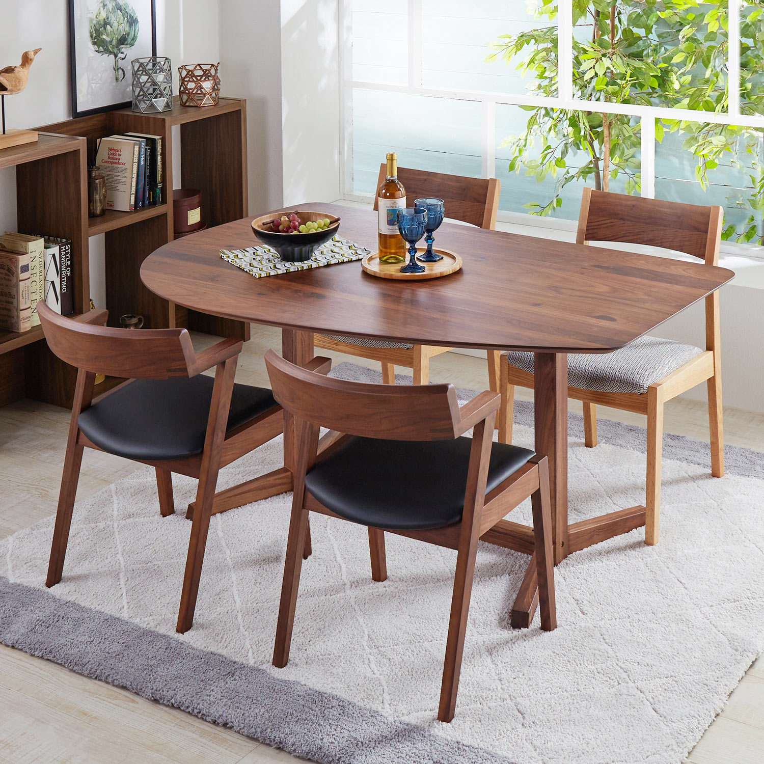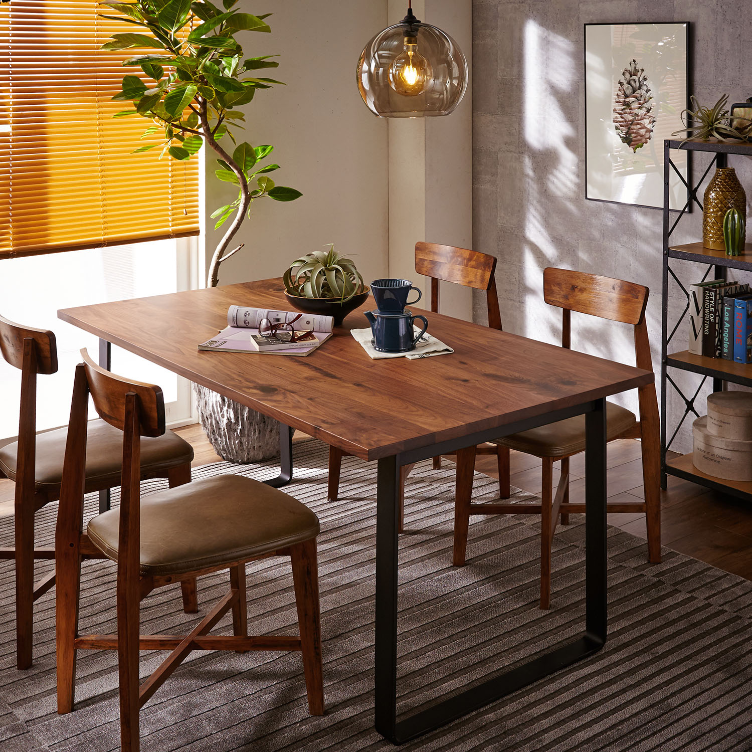 木目が美しいウォルナット材の脚を選べるダイニングテーブル