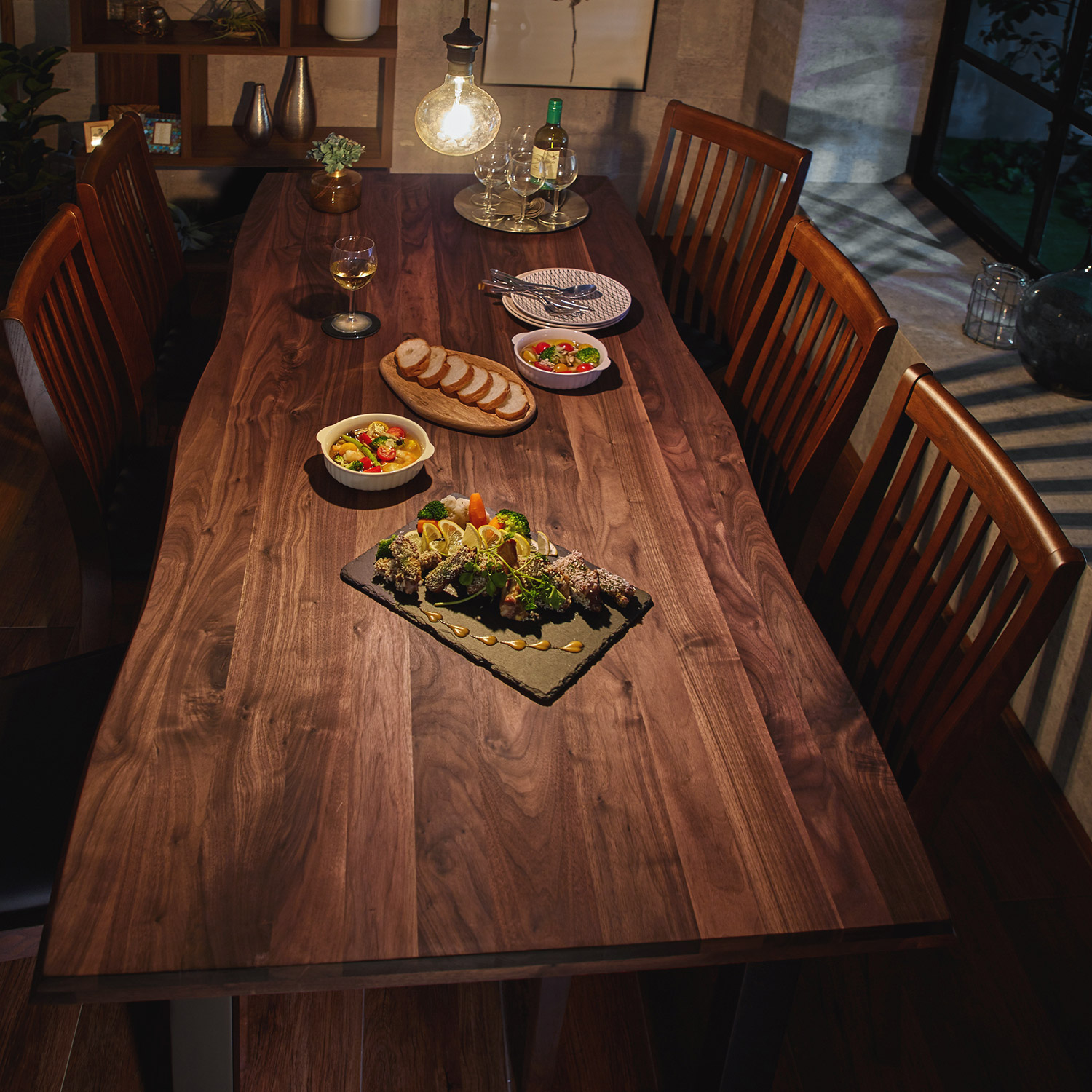 天然木ウォルナット材のダイニングテーブル