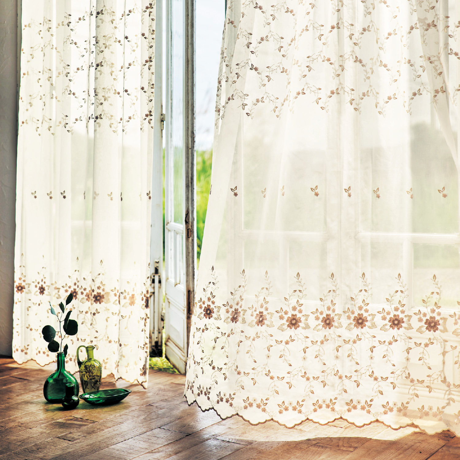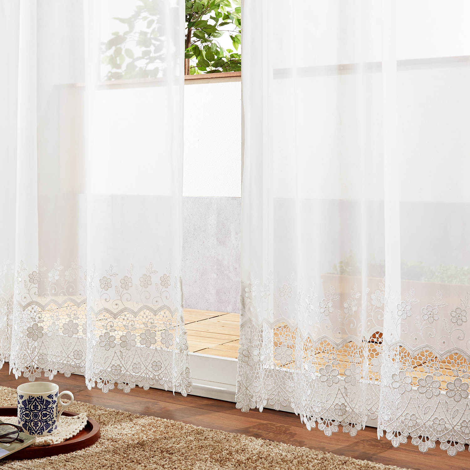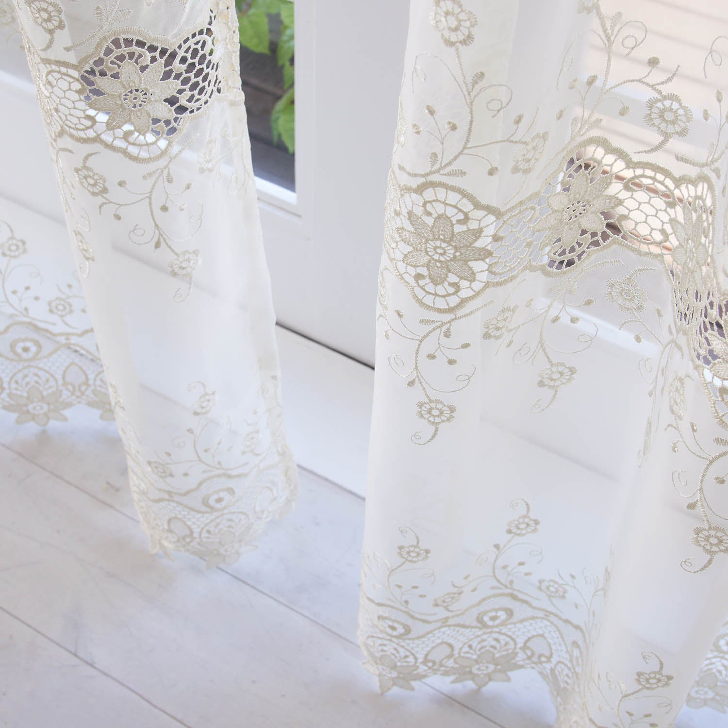 繊細なフラワー柄のトルコ刺繍レースカーテン