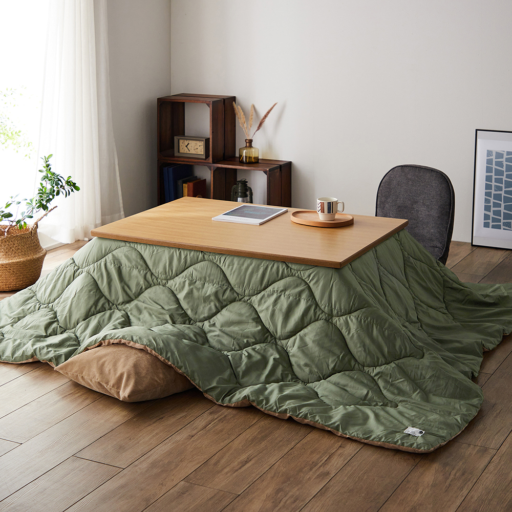 天然木のフラットヒーターこたつテーブル & アウトドア風リバーシブルこたつ布団セット