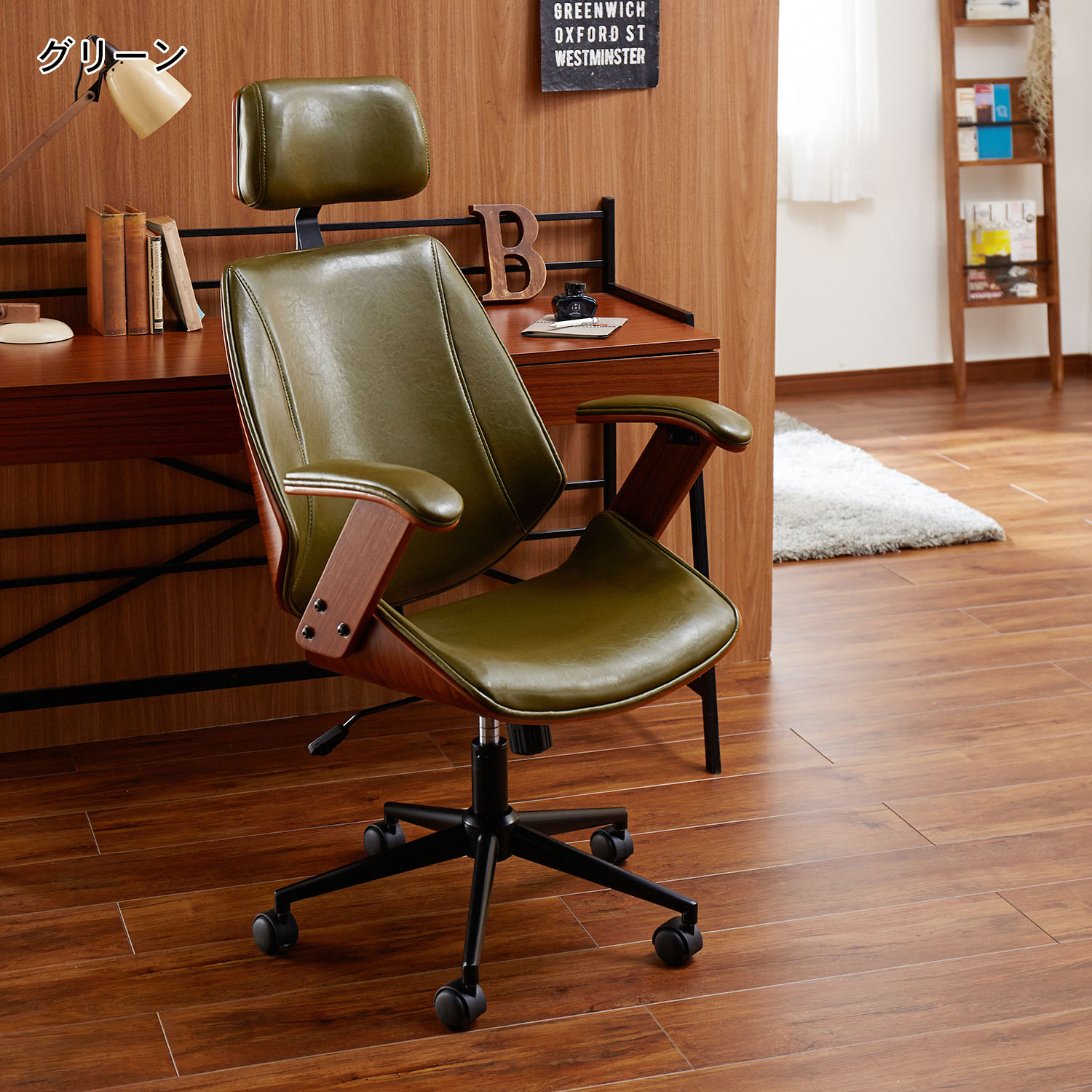 しっかりしたウレタンで厚みを持たせた座面、背もたれが特徴的なデスクチェアデスクと合わせた時の後ろ姿にもこだわりましたカーブを描いた背もたれと座面で、座りは浅いものの、腰がしっかり支えられます。本革のような風合いのポリエステル生地なので、年中使いやすい座面は一般のチェアに比べて少し高めの設計になっています。)