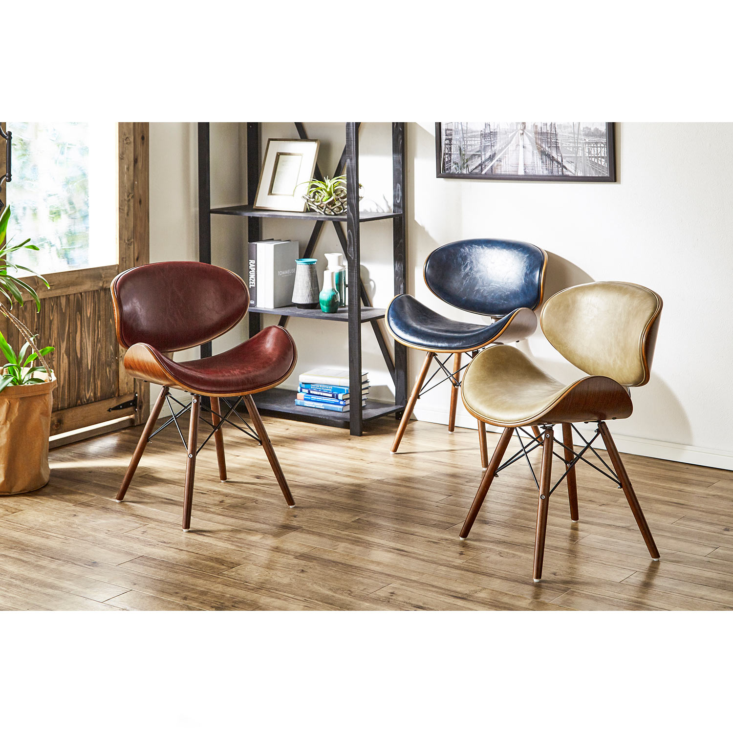 ぬくもりを感じる積層合板のフレームに、質感の高いレザー調の張地を施した座面、背もたれ、肘掛けを組み合わせたモダンなデザイン