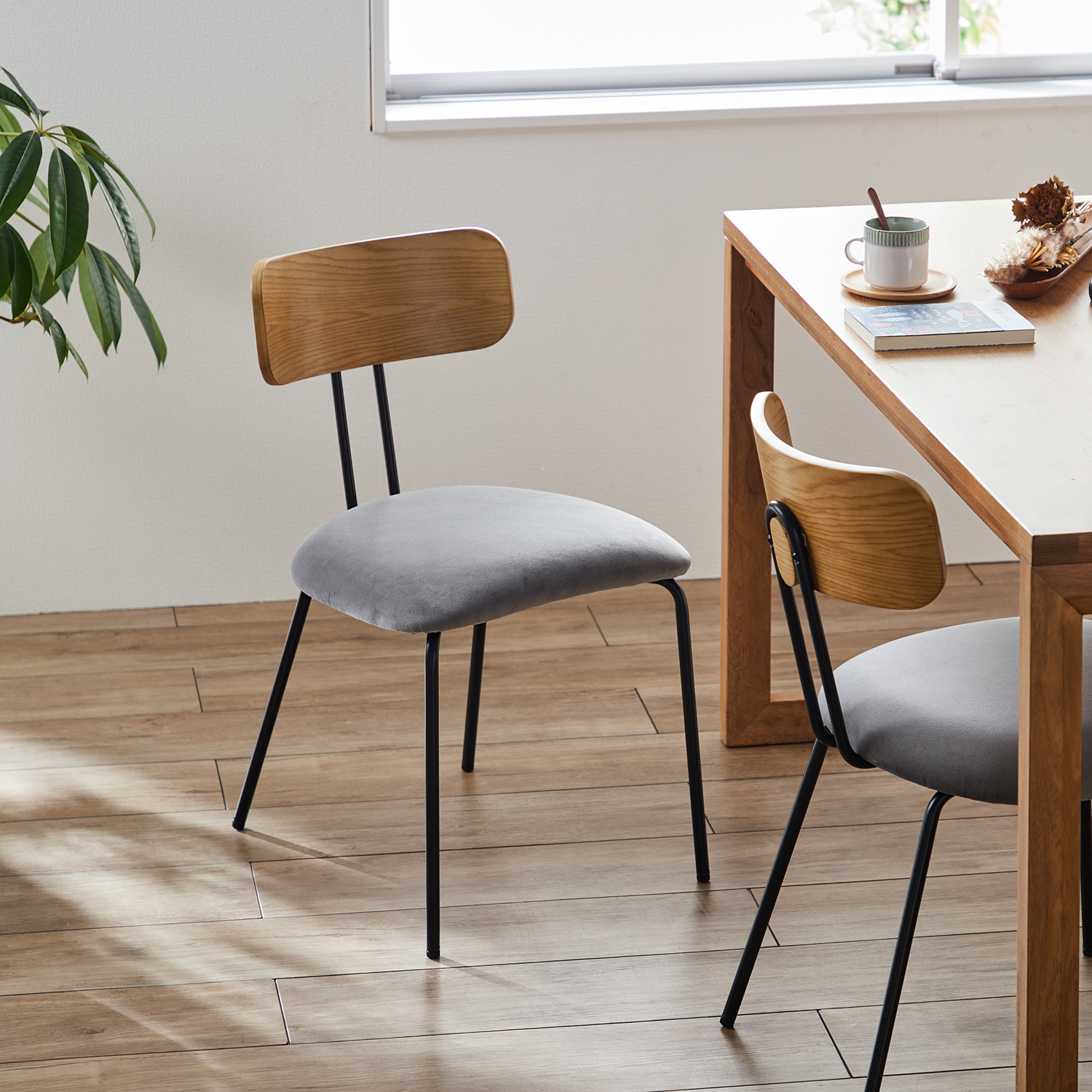 ナチュラルなカラーリングはお部屋に馴染みやすく、シンプルなフォルム & スチール脚で軽やかな印象を与えてくれます。肌触りのよい座面はクッション性も座り心地も◎背もたれの曲げ木は体をやさしく包み込むようなイメージで設計をしています。シリーズのダイニングテーブルとのコーディネートがおすすめ)