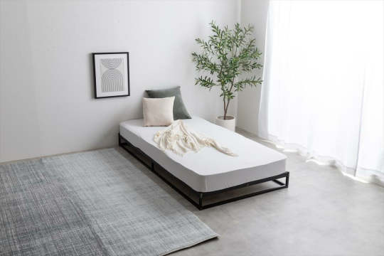このベッド、脚が見えないユニークなデザイン。浮いているように見えませんか?!