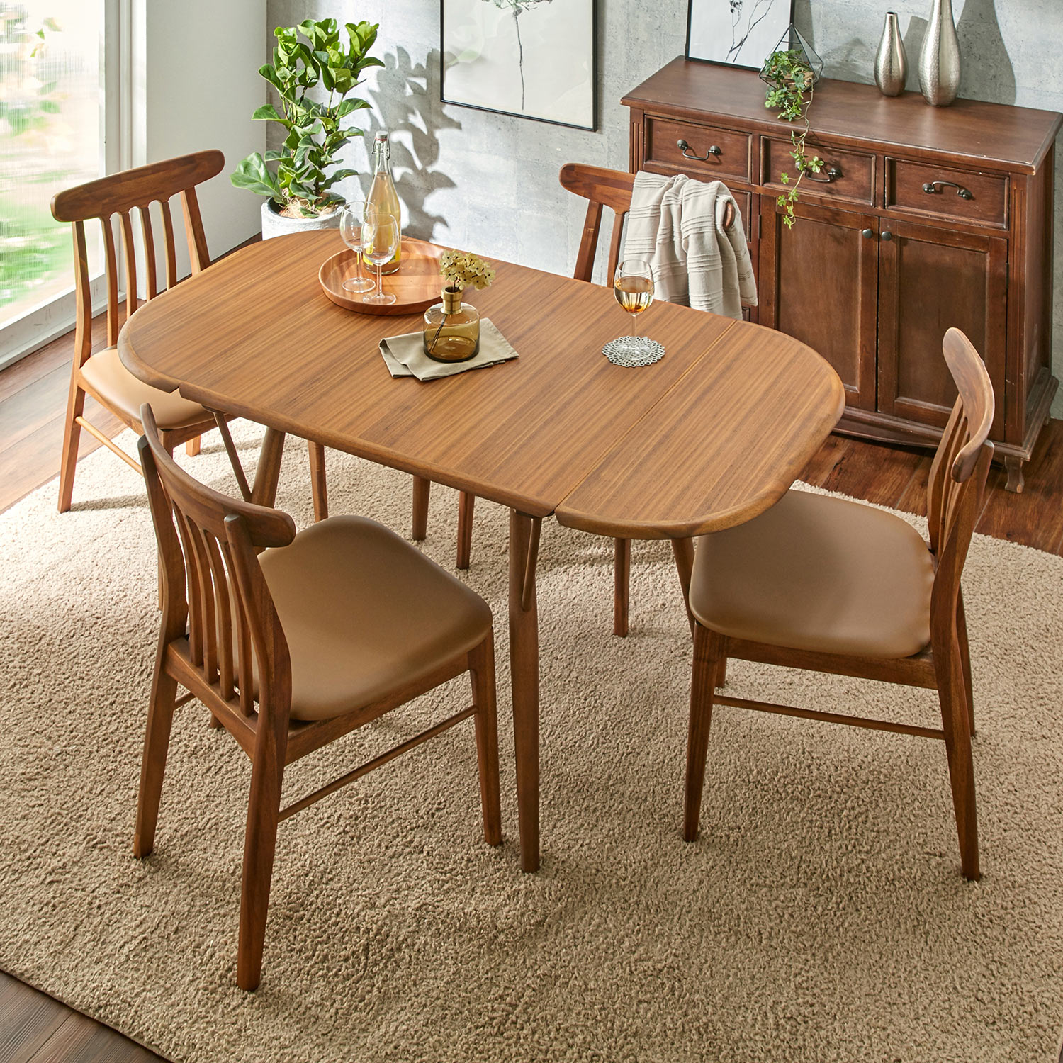 木目の塗装をしていない、ダークブラウンの家具