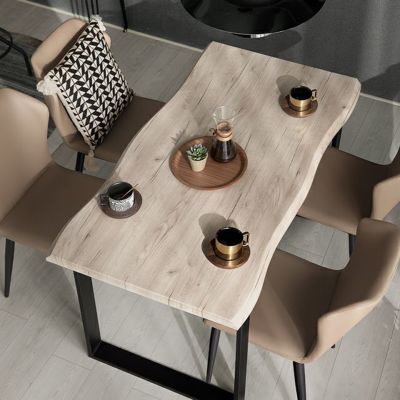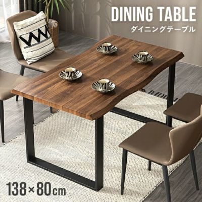 高級感あふれるウォルナットの天然木を、ダイニングで楽しめるテーブル天板の内側はウォルナット材の突板を使用し、外側の無垢材で四角く囲うように仕上げました額縁のようなデザインに、流れるような美しい木目が映えます。ロの字型の脚部は、すっきり細めのスチール製天板に厚みがありながら、脚部はスリムなので、圧迫感が少ないのが特長です天然木を贅沢に使いながら、お手頃な価格も魅力)