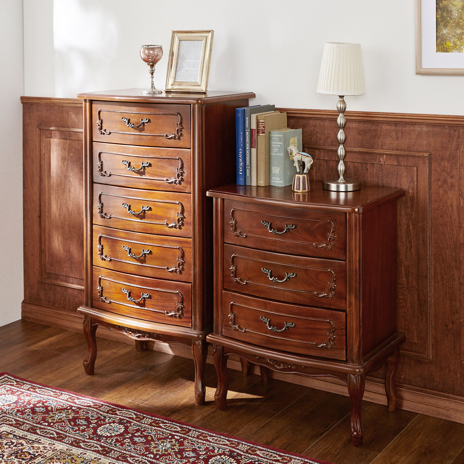 高級家具の代表的な素材であるマホガニー材を贅沢に使用したチェスト天板は木目の流れを生かしたデザインで丁寧に仕上げられています。優美な猫脚やアンティーク調取っ手のあしらいなど、細部にまでクラシックな意匠を施した佇まいが素敵リビング小物から衣類収納まで幅広いシーンで活躍「幅45cm」はスリムな設計なので、玄関などの狭い場所にもオススメ「幅80cm」は小引出し+幅広引出しを備えた設計で収納力◎統一感が生まれるシリーズ商品も別売りでご用意しています。)