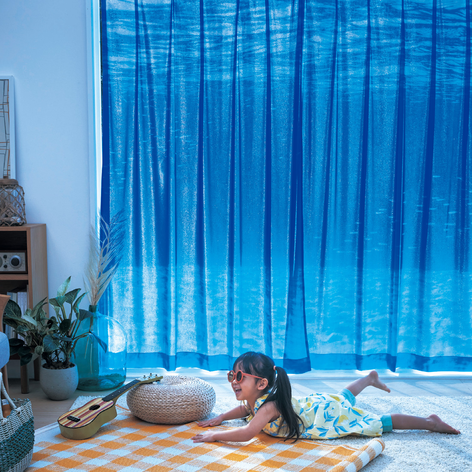 砂が入ったりしても洗える感じで軽いラグを敷くあの雰囲気を出すため