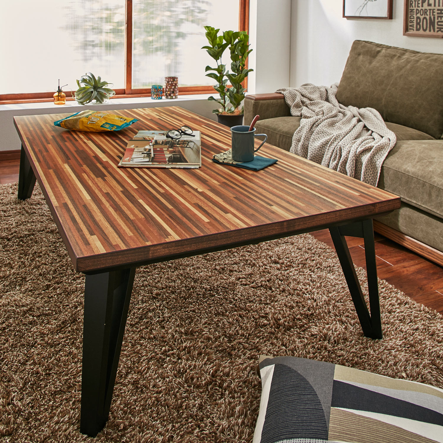 ニュアンスを楽しめる天板デザインが魅力細かくランダムに配したモザイク調デザインが、空間をおしゃれに彩ってくれます。つくりの良さを感じさせる佇まいは、リビングテーブルとしても使えオールシーズン大活躍カーボンフラットヒーターを採用しているので、見た目もすっきり手元コントローラーで、操作も簡単です抜け感のある三角脚にも木を使い、ブラック塗装でモダンな雰囲気が漂います。「ナチュラル系」は色味の異なるオーク材を使用「ブラウン系」はバーチ材・メープル材・チャイニーズウォルナット材・サペリ材・アメリカンウォルナット材の多樹種を使用しています。