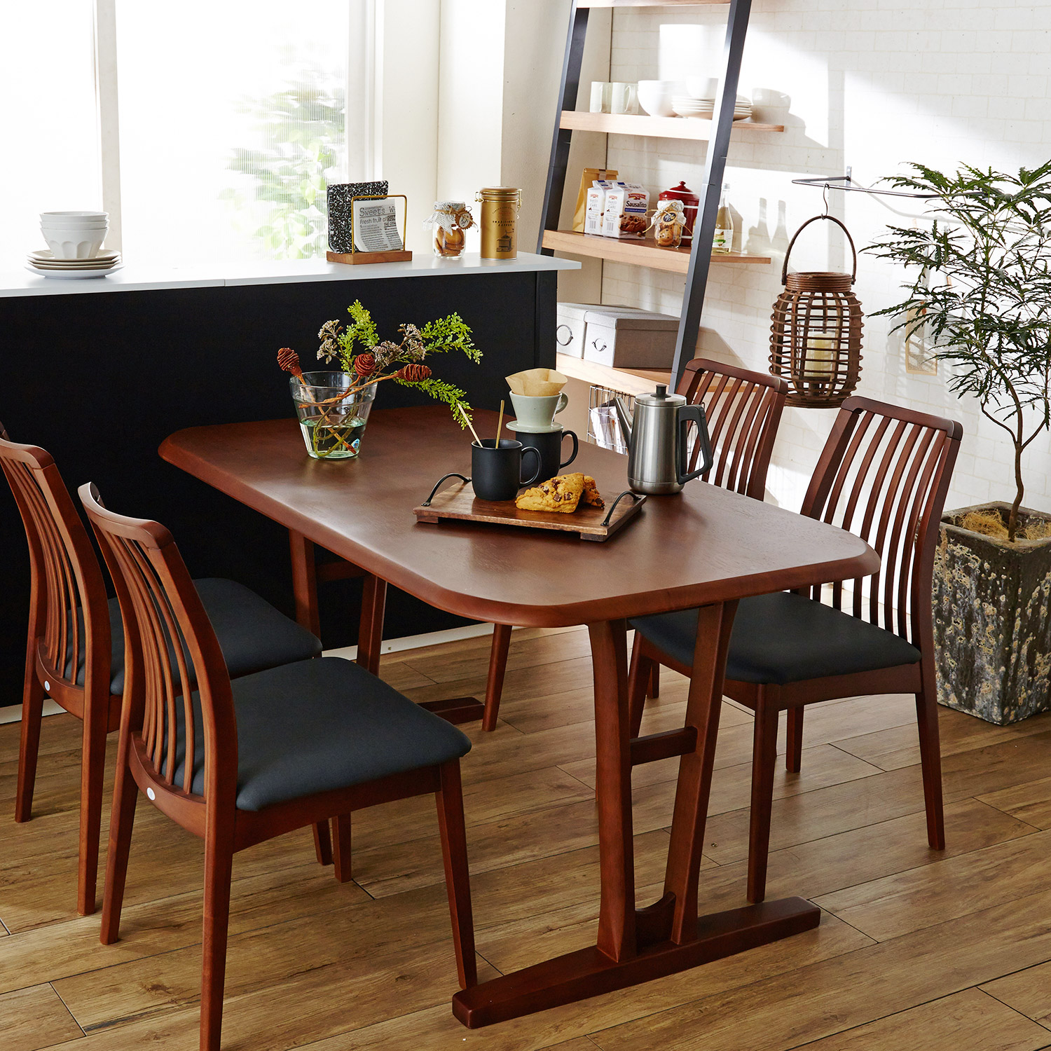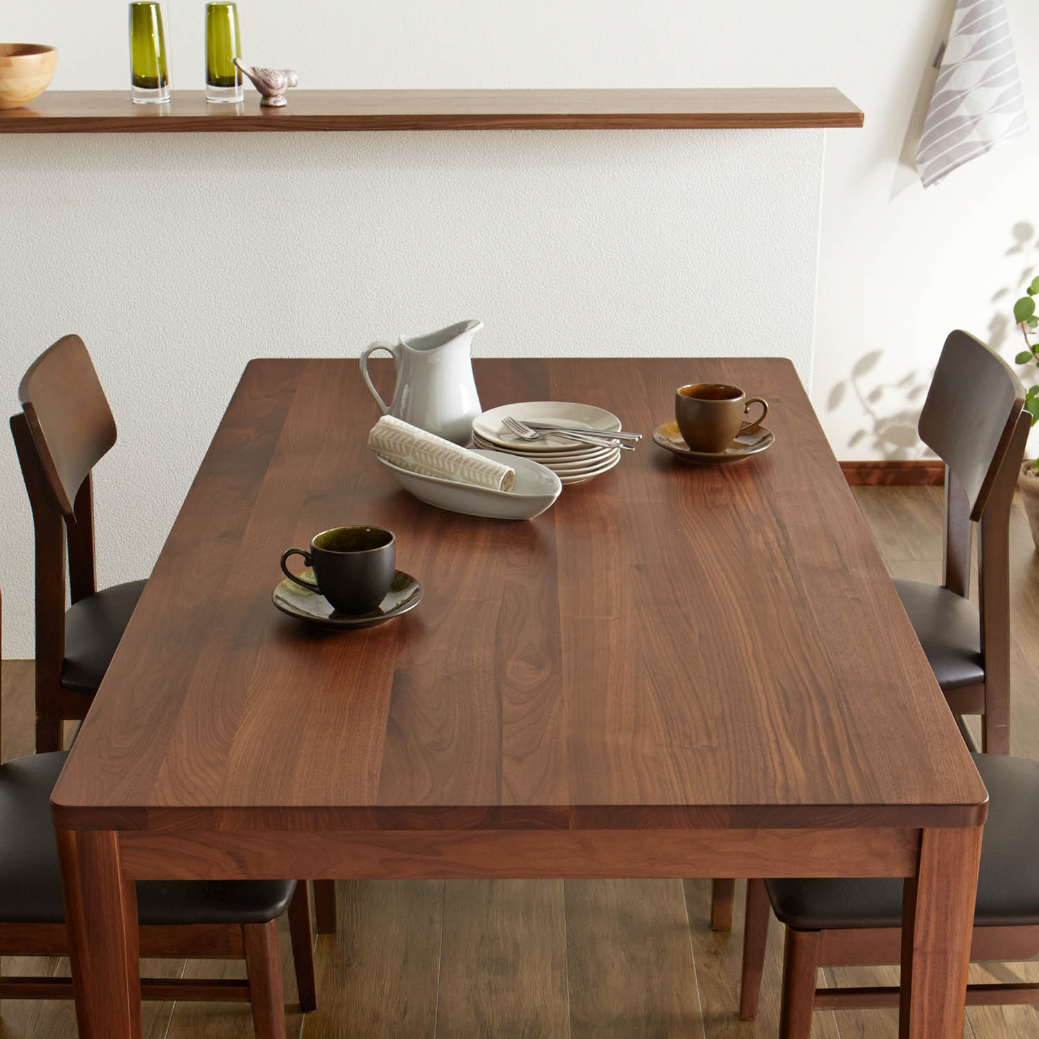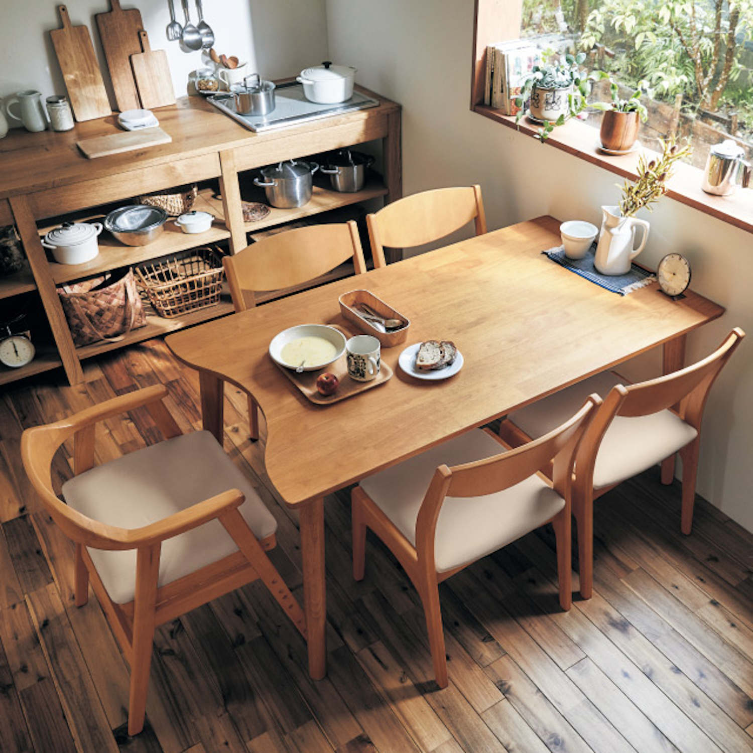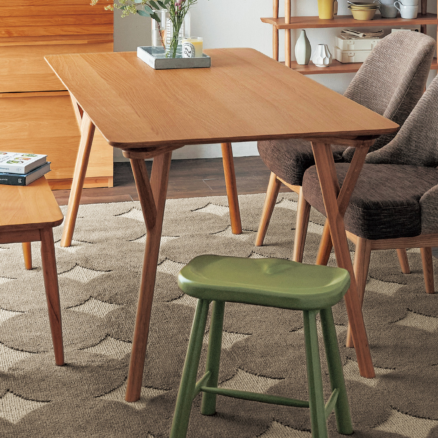 あたたかみのあるアルダー材を使用したダイニングテーブル。天板の縁をやや斜めに落とし、腕への当たりをやさしく仕上げたつくりの良さが魅力角に丸みを持たせた脚部は、対角になるよう配すること。っきりとした印象を見せてくれます。幅広いインテリアに合わせやすい「ナチュラル」と「ブラウン」の2色)