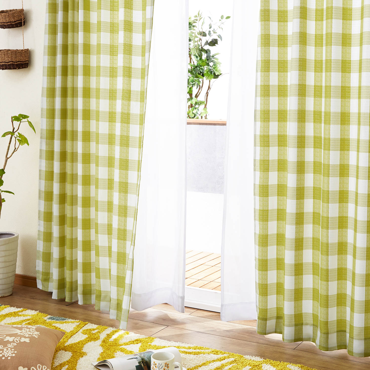 ギンガムチェック柄のカーテン & UVカット・遮熱・ミラーレースカーテン4枚セット