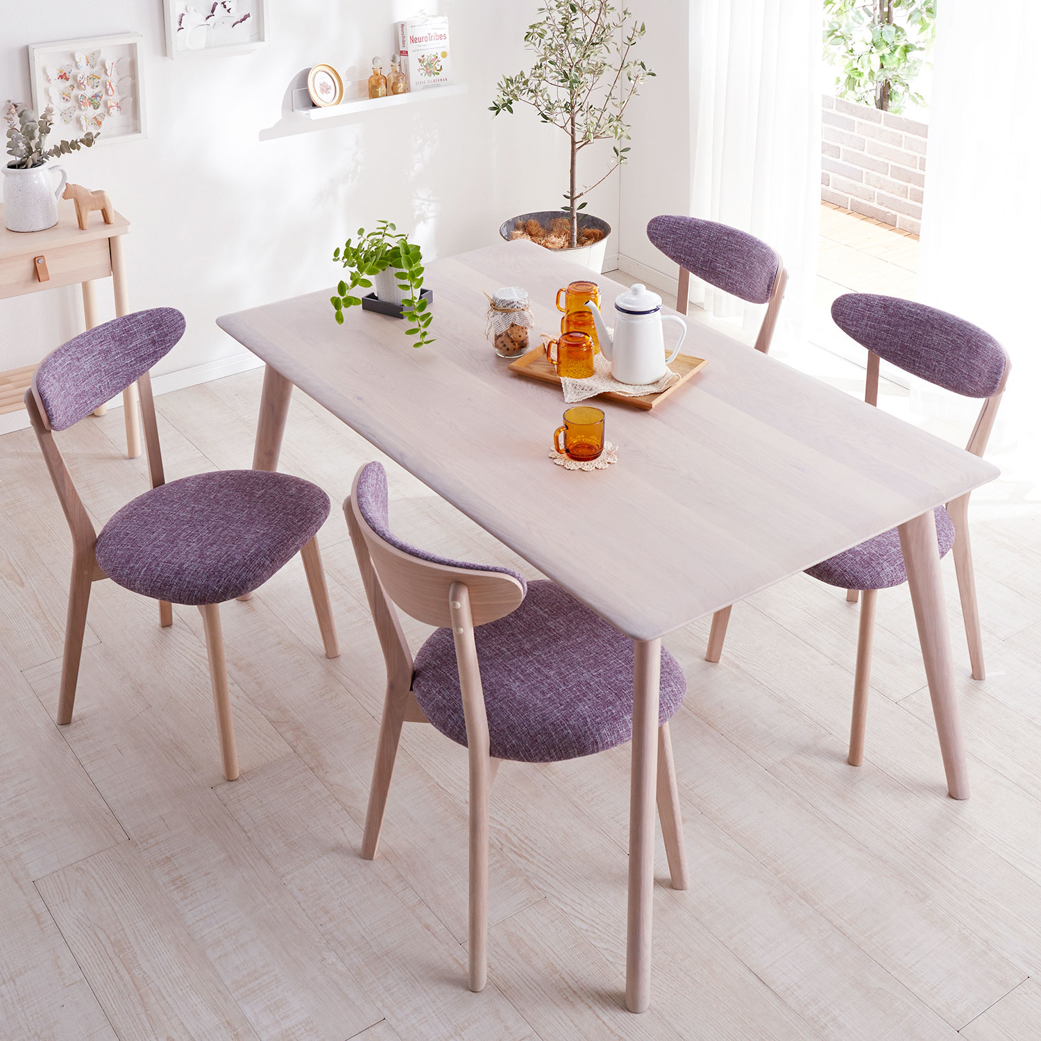美しい木目の流れを楽しめるオーク無垢の集成材を使用ホワイトカラーで仕上げた、白系インテリアにも馴染むダイニングテーブルです天板角には丸みをつけ、やわらかな印象に厚みを抑えた天板や丸み脚で、圧迫感を与えにくいのも魅力夫婦2人暮らしにちょうどいい「幅80cm」リビングダイニングにも置きやすいコンパクトな4人掛けの「幅135cm」ゆったり4人掛けで使える「幅150cm」シリーズのチェアやベンチと揃えて、統一感のある空間を演出するのもオススメです