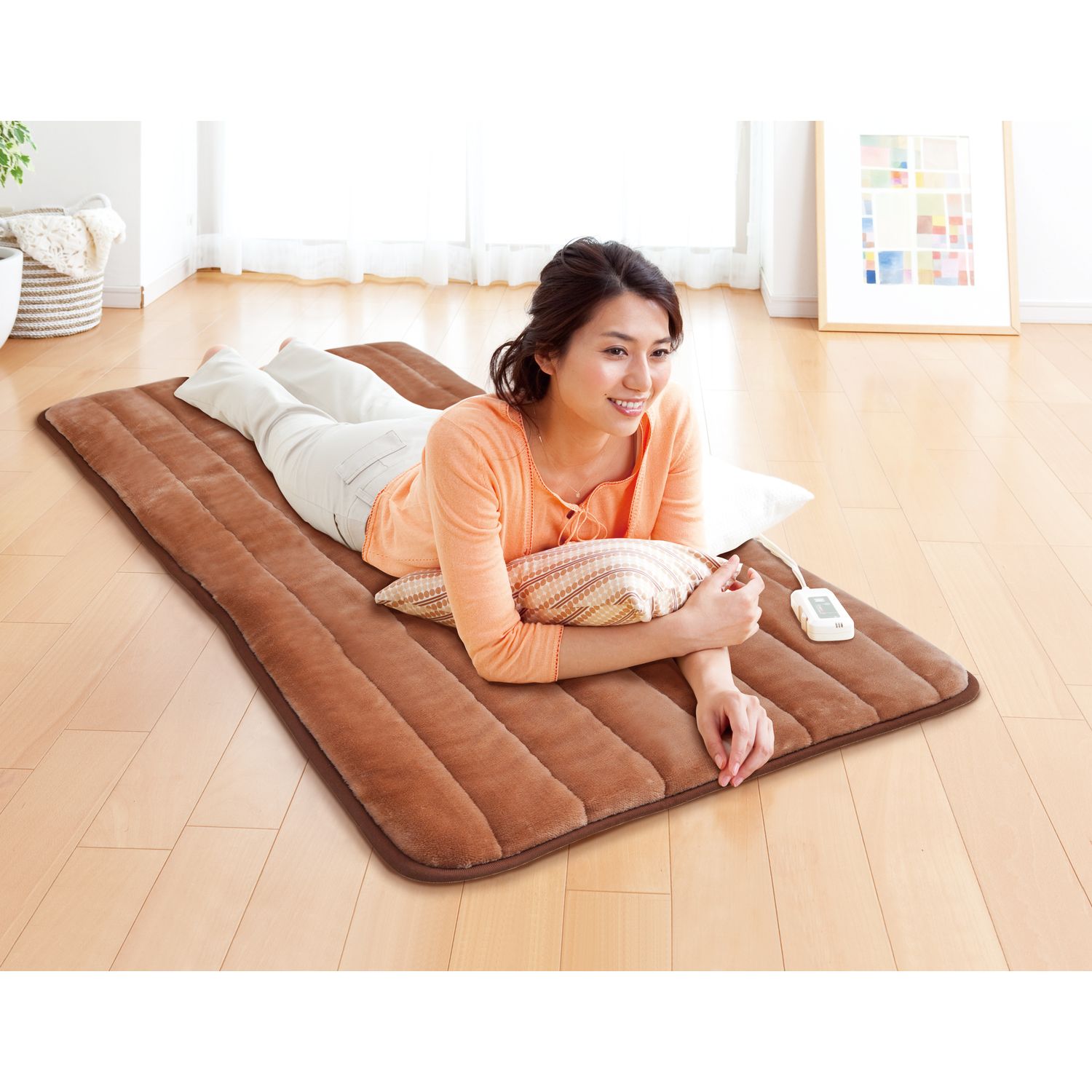 寒い時期に大活躍する、ひとり用の電熱マットです気になる電磁波を抑制してくれる安心の仕様毛足が約8mmあり、ふかふかの肌触りです軽量なのでどこでも気軽に持ち運びでき、ちょっとごろ寝にも便利ソファーに掛けて使うこともできます。手洗いや洗濯機洗いもOK手洗いや洗濯機洗いもOKダニ退治機能切り忘れ防止、2時間オフタイマー機能付き)