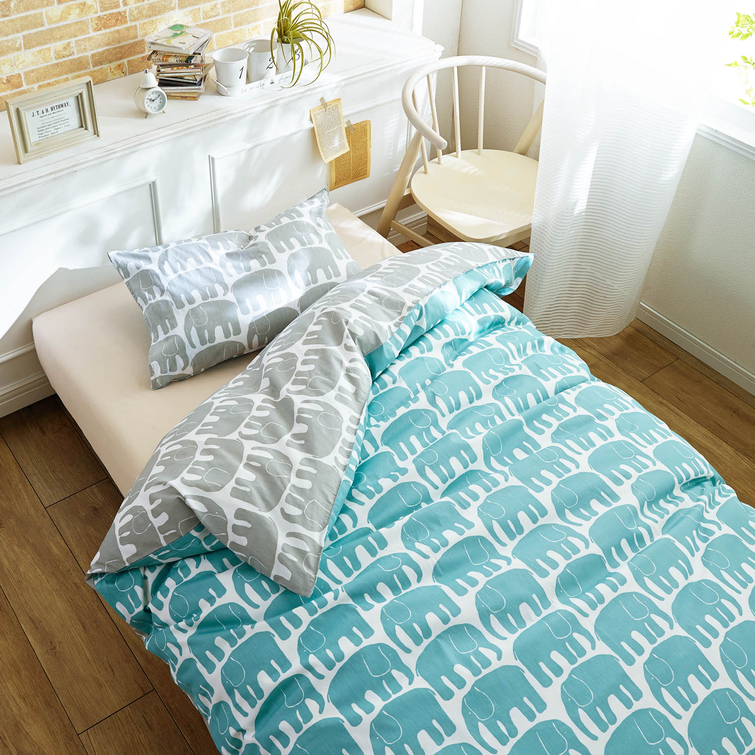 フィンランドで生まれた老舗のテキスタイルブランド「フィンレイソン」からおなじみのゾウモチーフのデザインが久しぶりに復刻しました肌に気持ちいい綿100%素材を使用しているので、オールシーズンお使いいただけます。表裏で色合いを変えているから、リバーシブル使いもOK同柄の枕カバーと揃えるのもおすすめ。)