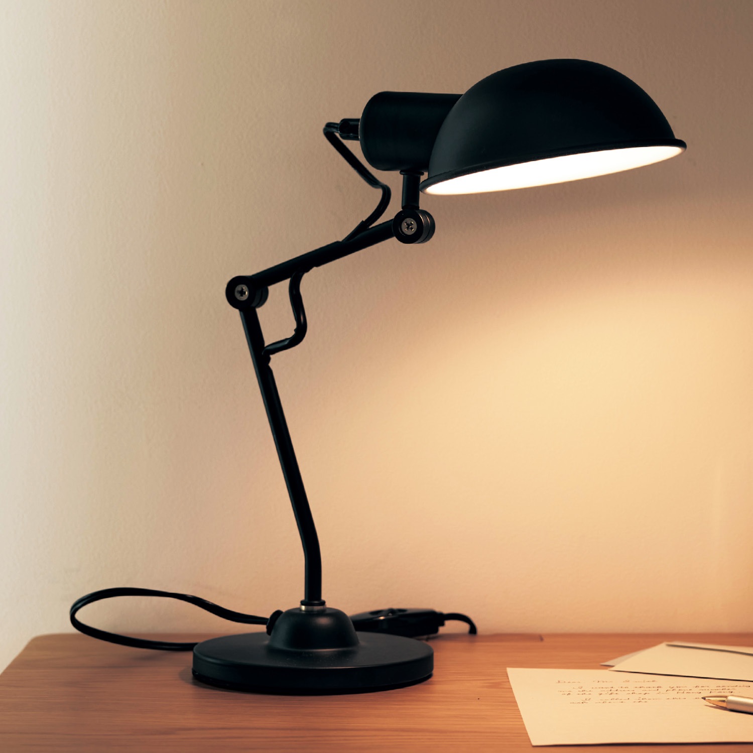 ーデザインー・可動域が広いアームのライトー機能ー・2カ所で角度調整できる・卓上を照らしたり、壁にあてて部屋全体を照らす間接照明としても・市販のLED電球に付け替えもOK・ON/OFFスイッチ付きー素材ー・マットな塗装と真鍮の金具が落ち着いた雰囲気
