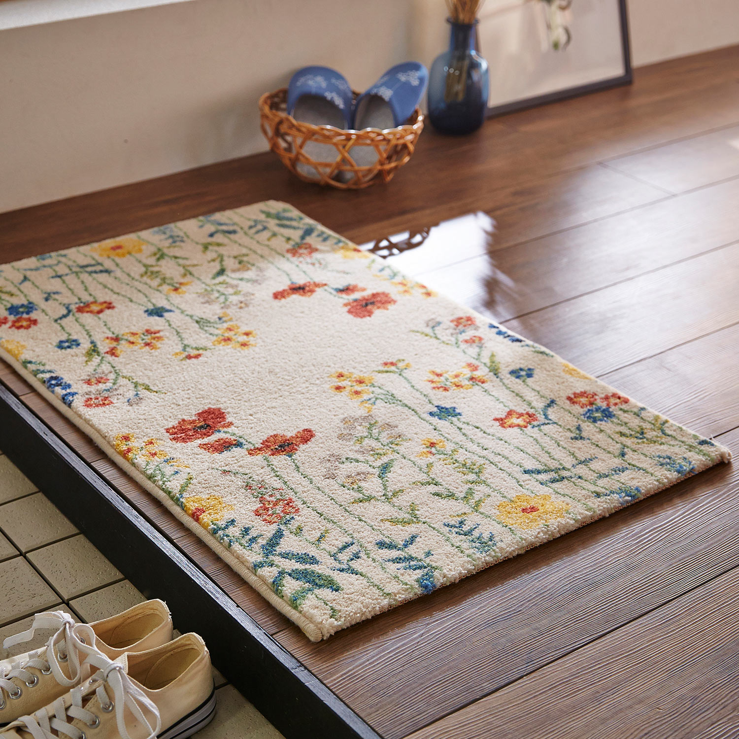爽やかな色合いが玄関スペースをエレガントに演出ウィルトン織りで花柄を表現した、華やかなデザインが魅力です抗菌・防臭機能糸を使い、洗濯可能でいつも清潔吸着シート付きでズレにくいから使い勝手も◎玄関スペースに合わせて選べる3サイズ展開です