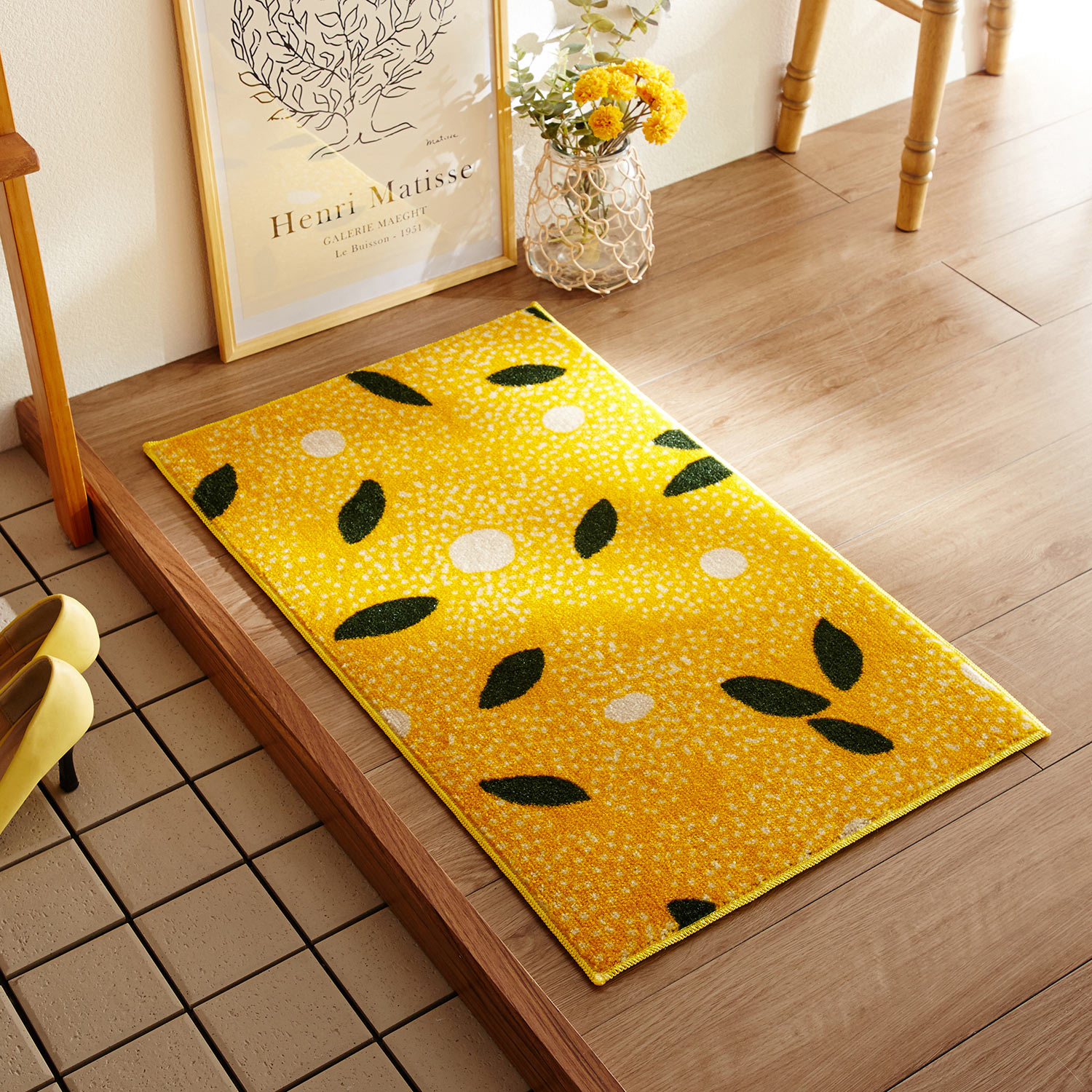 パッと目を引くカラーが、気分を明るくしてくれる玄関マット風水でも好まれるイエローをベースに、清楚な白い花が玄関でお出迎えしてくれます。裏面にはすべりにくいよう吸着シート付きかまち用も含めて、4サイズから