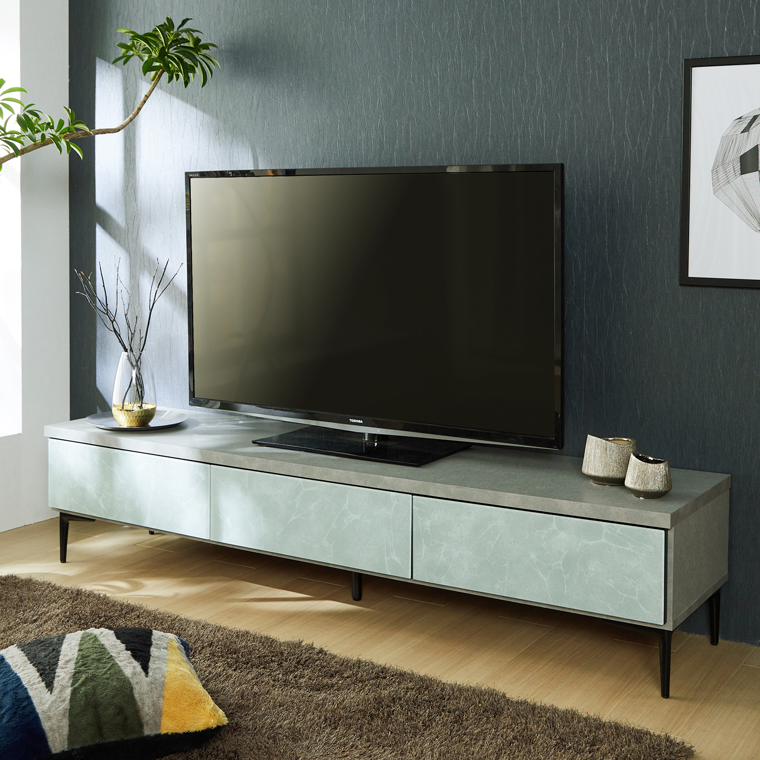 白系や北欧テイストにも合う大理石調デザインのテレビ台モダンな佇まいながらも色合いをやさしくすることで、幅広いお部屋にしっくりと馴染みます。天板とガラスの前板は大理石柄で高級感も◎中央のデッキ収納部前板はフラップ扉仕様インパクトのある存在感ながら、脚付きで軽やかな印象をもたらします。左右に幅広の引出しを備え、収納性もGOOD「幅150cm」「幅180cm」の2サイズより