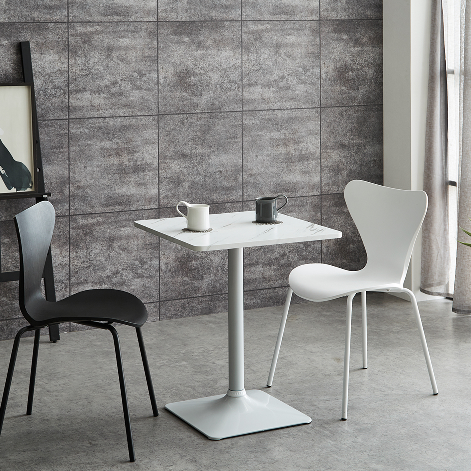 大理石調天板のスクエアカフェテーブル