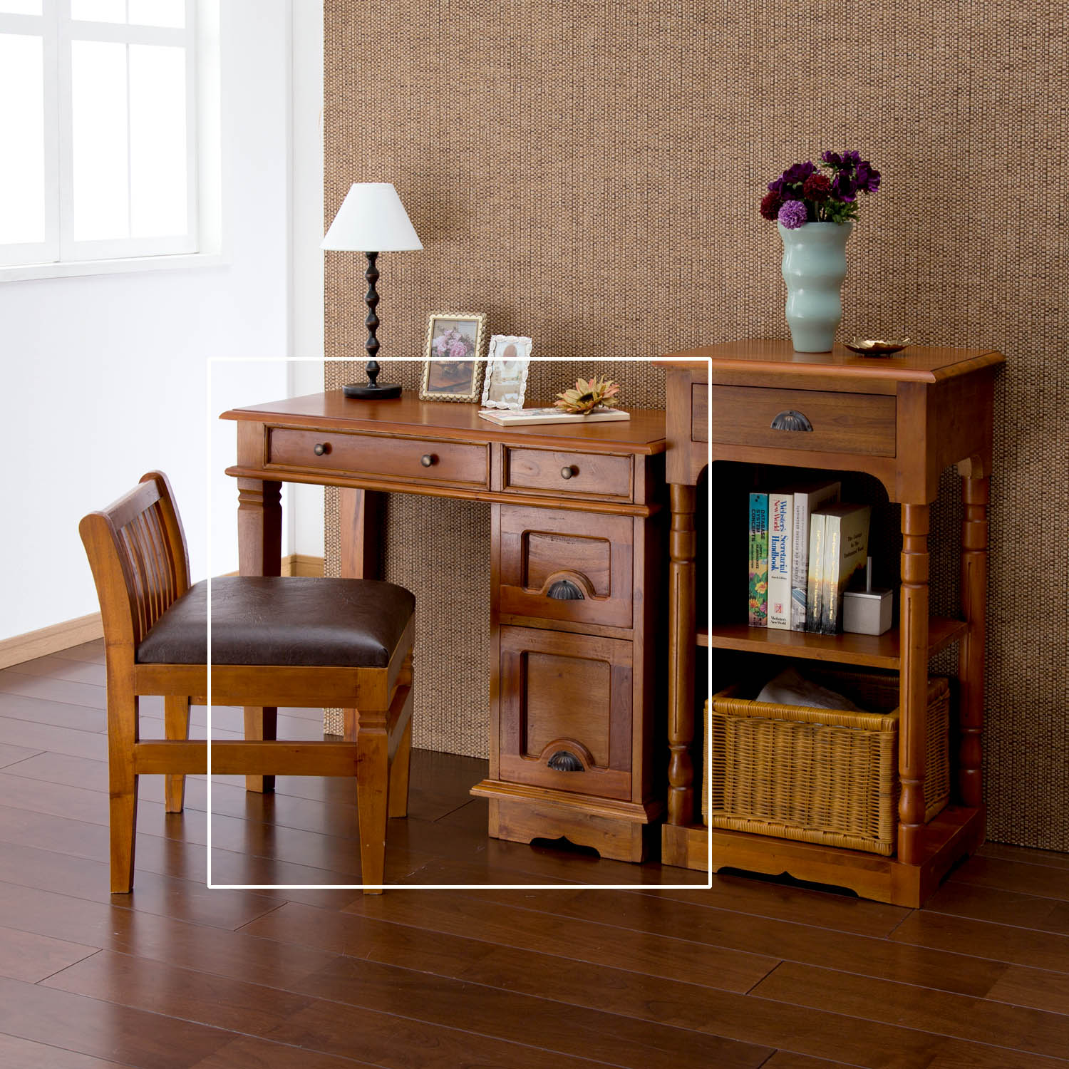 天然木カバ材を贅沢に使用した存在感のある佇まい深みのある独特な色合いが、重厚感も出しつつレトロな雰囲気を演出木の表面はなめらかできれいな仕上がりなので、気持ちよく使えます。省スペース使いできる幅80cm、奥行45cmのコンパクトサイズ引出しを1杯備え、幅広だから書類などもすっきり収まります。シリーズで揃えて統一感のある空間を演出するのもオススメ