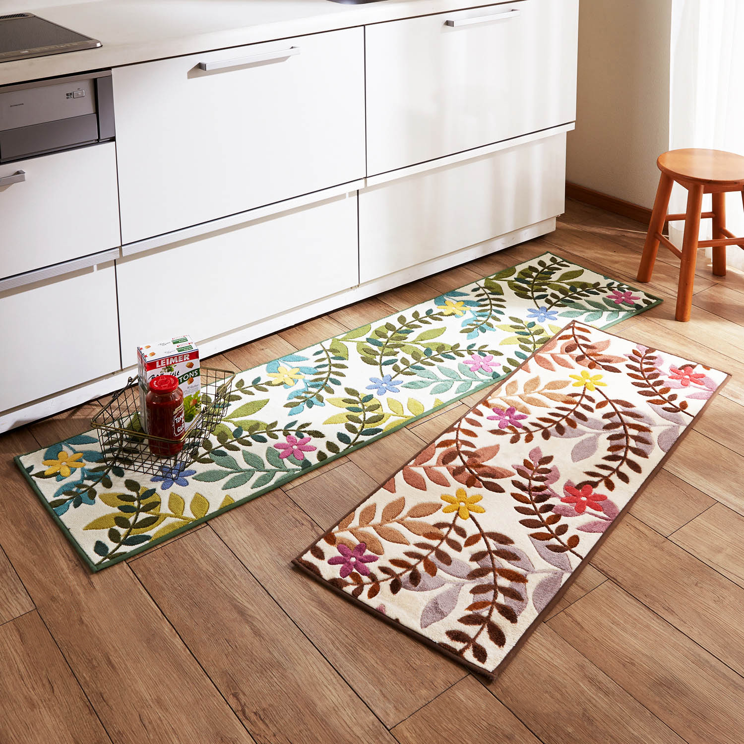 抗菌防臭糸使用多サイズ展開の花柄キッチンマット