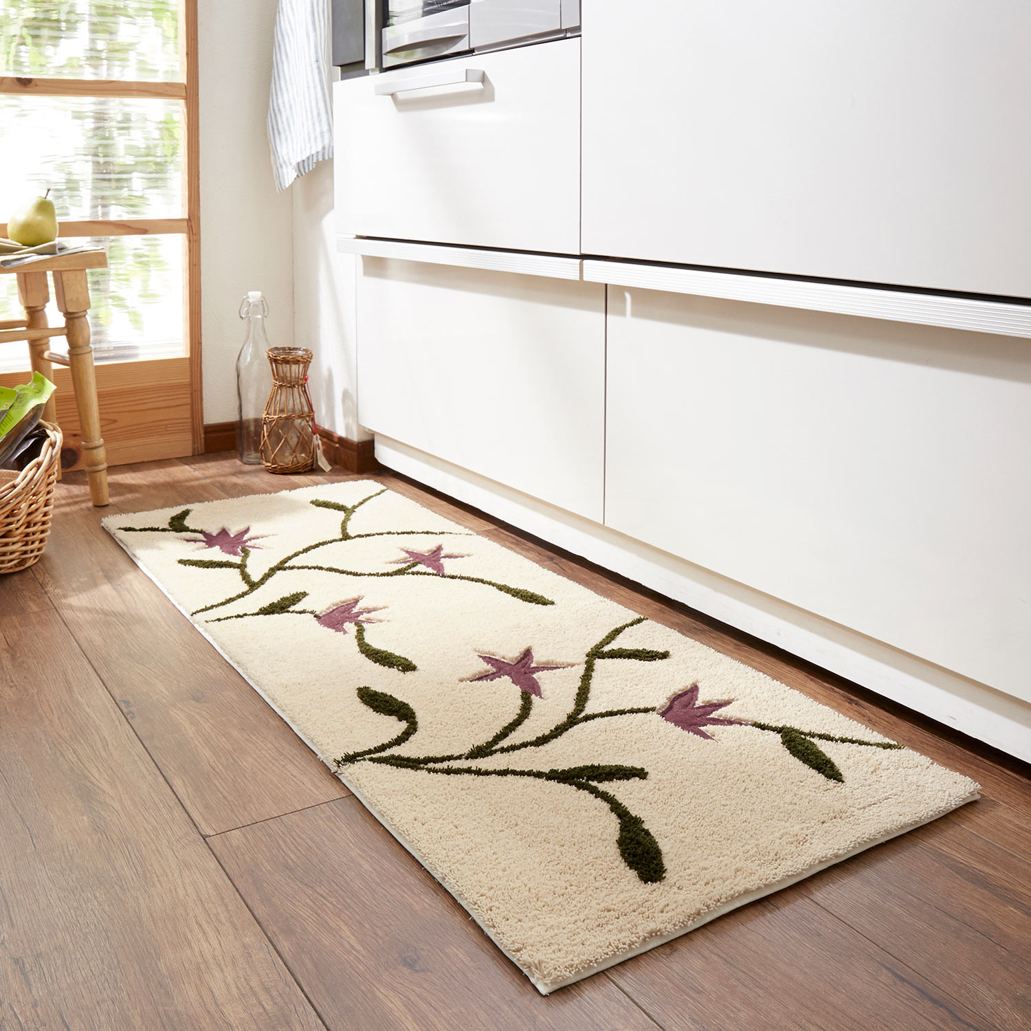 キッチンの足元を華やかに彩るシビラのキッチンマット愛らしいフラワーモチーフは、花びら部分をアップリケにしています