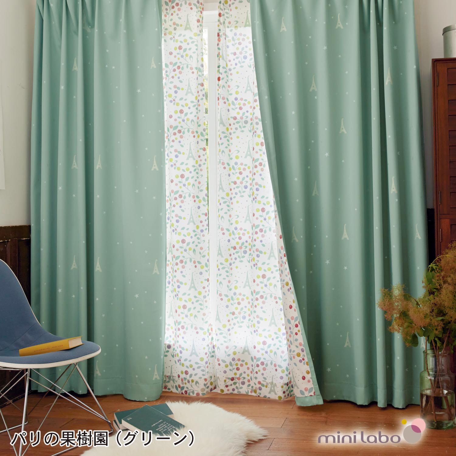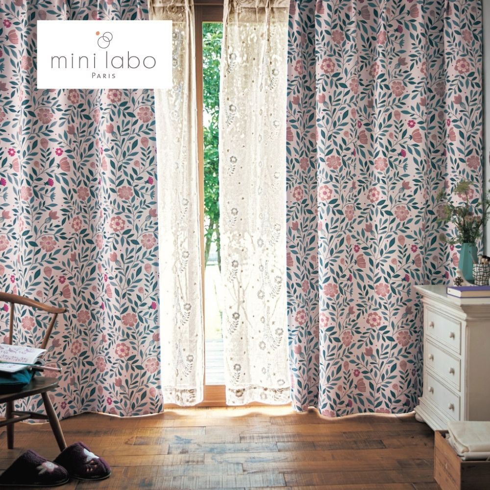 ・お部屋が一気にパリっぽく華やぐカーテン・大人の女性がトリコになるmini laboのデザイン・遮光機能付きで室内の様子を分かりにくくしたい方や朝日や西日をやわらげたい方におすすめ・子ども部屋はもちろん、リビングや寝室など落ち着いた雰囲気にしたいお部屋にも~夏は遮熱、冬は断熱保温効果。冷暖房効率もアップし、節電し省エネ、室内を快適に~夏の直射日光熱をカットし、室温の上昇を抑え冬は保温、冬の外の冷気をカットし、室温の低下を防ぐ