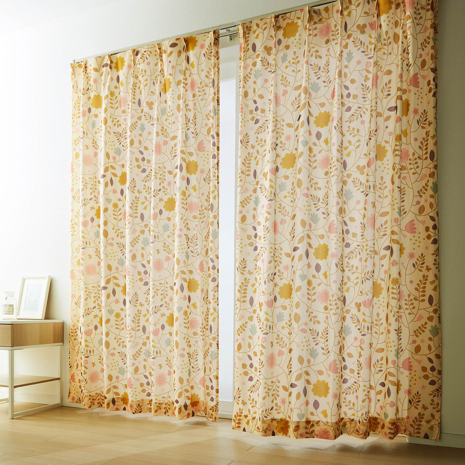 ・昼も夜も、外から見えにくい遮像効果・部屋の中が見えにくく、視線をカットしプライバシーを守るので防犯対策にも・外出時に閉めておくことにより、帰宅時に感じる暑さ・寒さを多少軽減できる遮熱効果・お部屋が華やぐ総柄プリントの薄地カーテン・華やかなデザインとカラーで、お部屋を一気にイメージチェンジ・落ちついたデザインや無地の厚地カーテンにコーディネートするのもおすすめ~素肌だけでなく、家具や床も強い紫外線の日焼けから守ります。~家の中にいても、窓を通して浴びている紫外線家の中では肌も無防備なことも多いので、UVカット機能つきのカーテンがオススメUVカット率も要チェック
