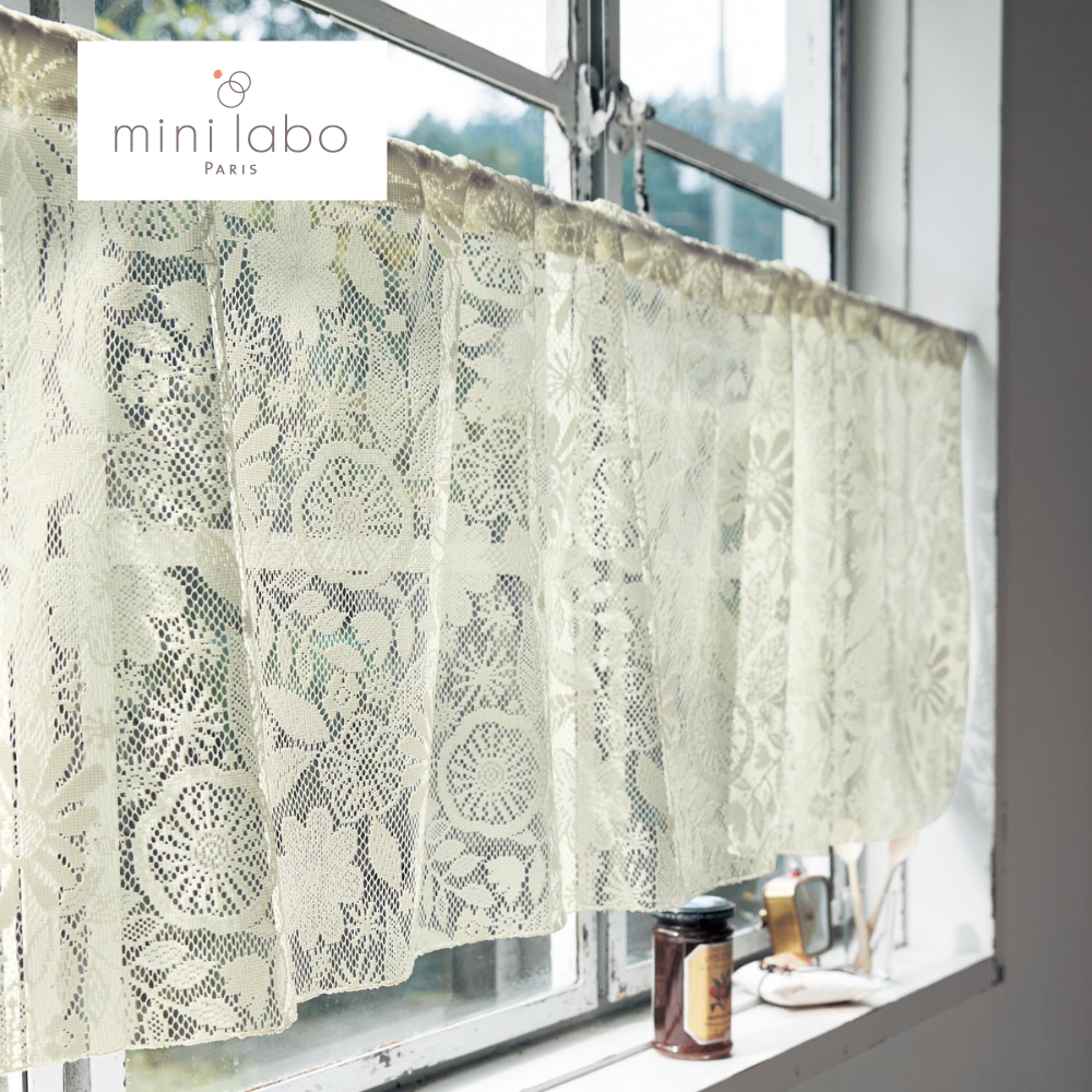 レースの小窓・カフェカーテン/刺繍のようなお花畑 「ミニラボ」