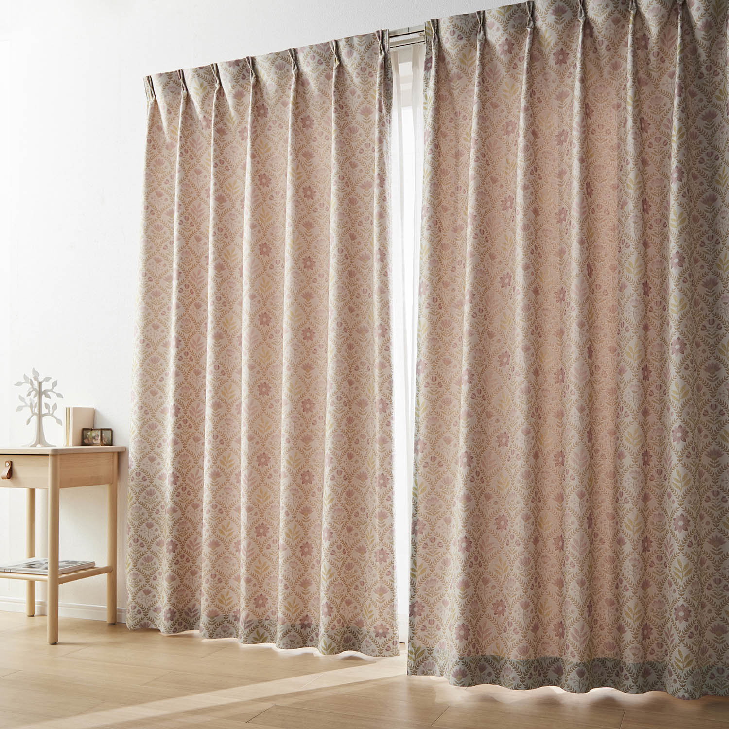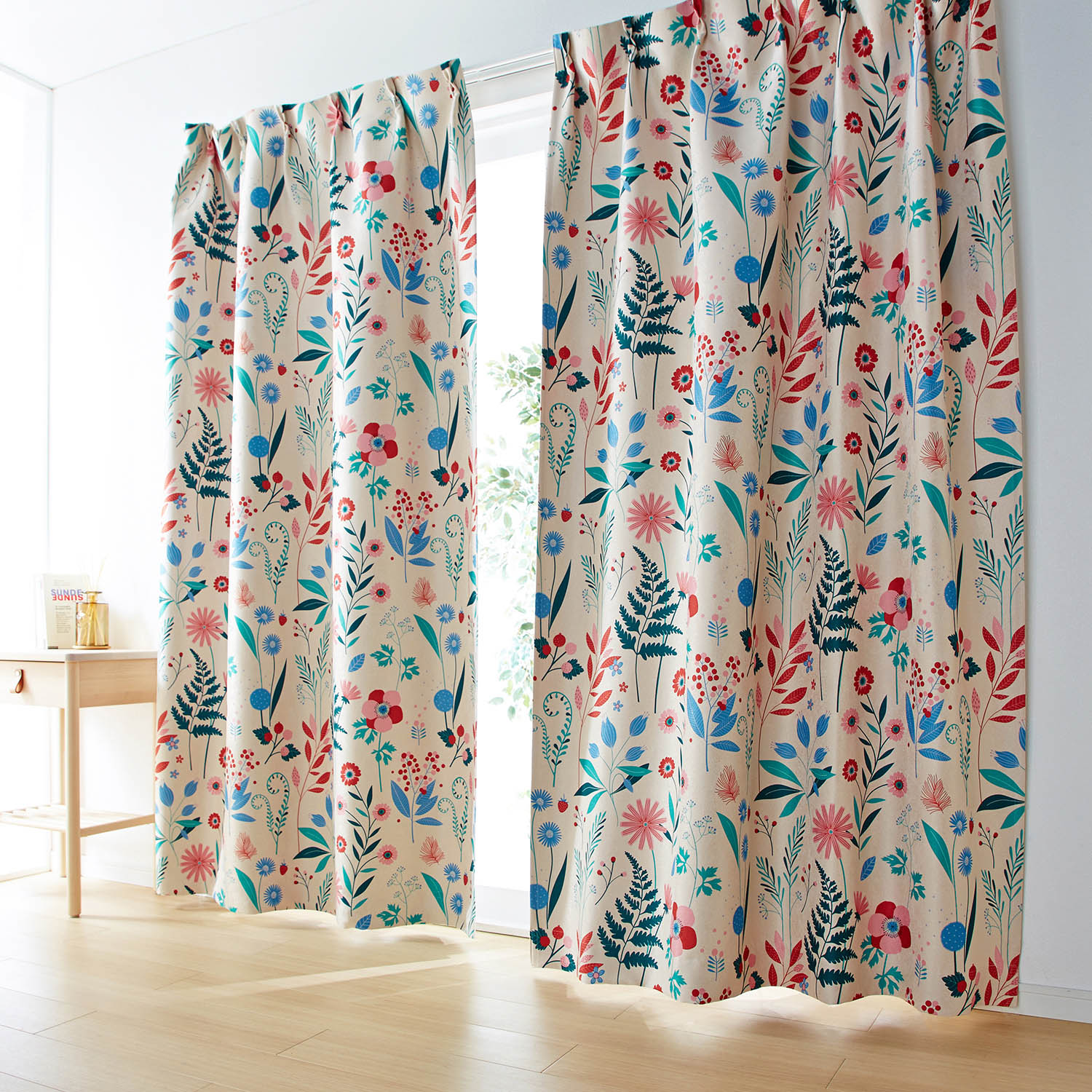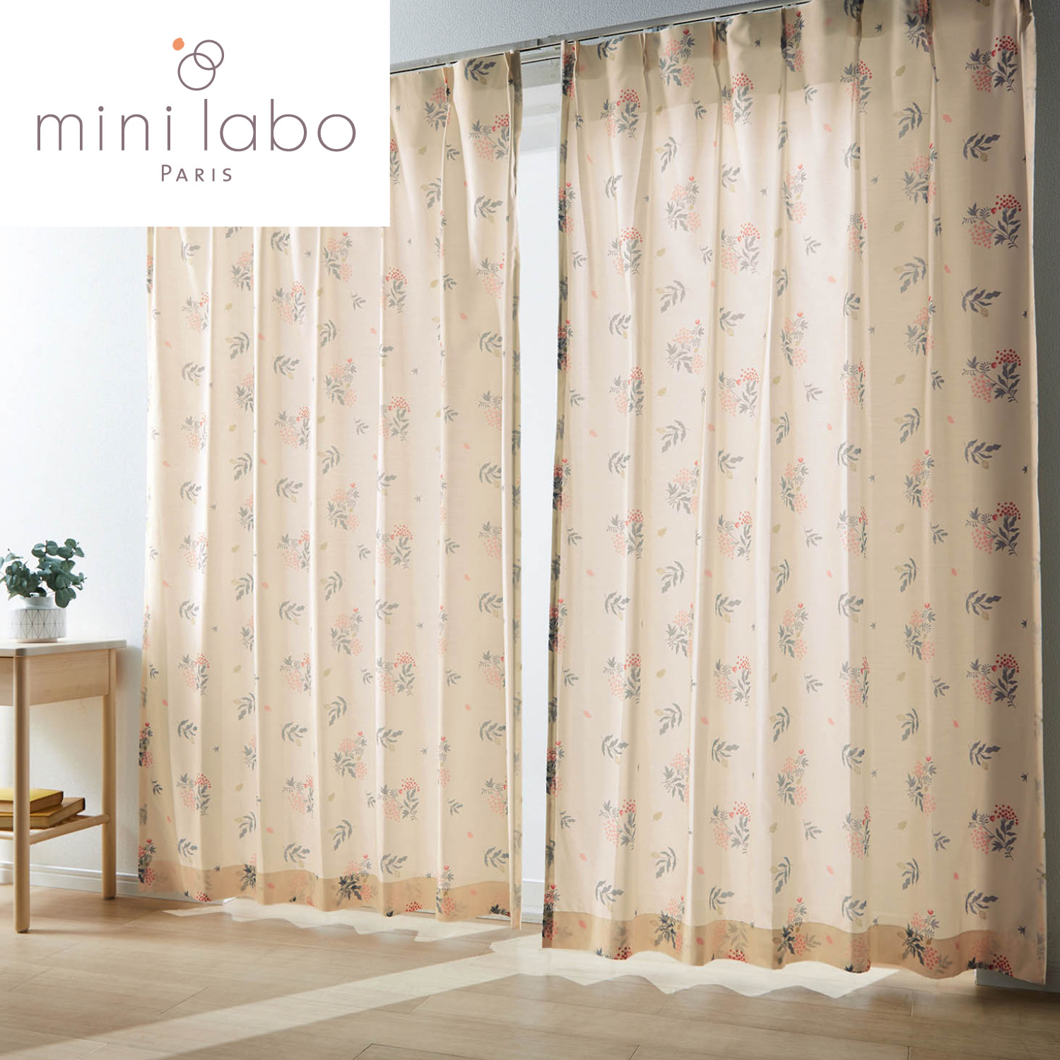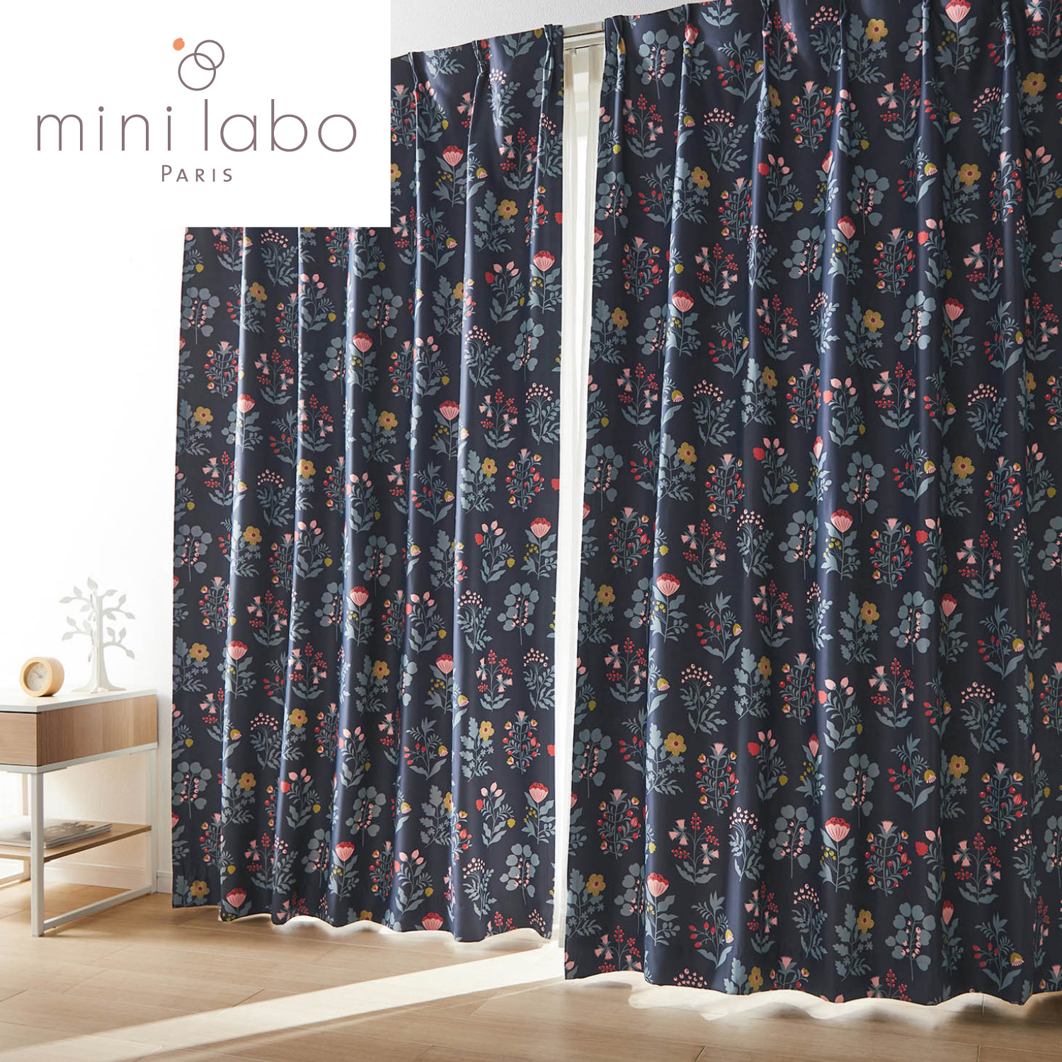 ーデザイン・スタイリングー・ロングランで人気の、mini laboデザインのカーテン・開閉の際や外から見えた時のかわいらしさが魅力・表生地はジャカード織りで柄を表現・裏地には、華やかな柄をプリント・窓に合わせてえらべる12サイズ展開・表地と同じ素材のタッセル付きー機能ー・裏生地の特殊な加工で遮光、遮熱、防音と多機能で快適・しっかり光を遮る1級遮光ー素材ー・生地は厚めでしっかり~夏は遮熱、冬は断熱保温効果。冷暖房効率もアップし、節電し省エネ、室内を快適に~夏の直射日光熱をカットし、室温の上昇を抑え冬は保温、冬の外の冷気をカットし、室温の低下を防ぐ