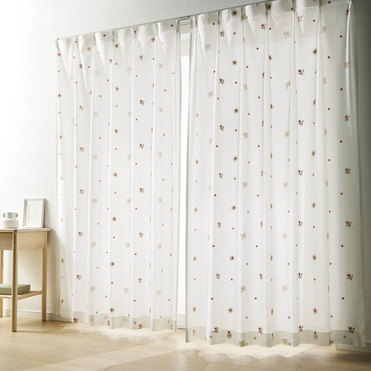 ループ刺繍のUVカット・遮熱・遮像レースカーテン/ノラのお庭 「ミニラボ」