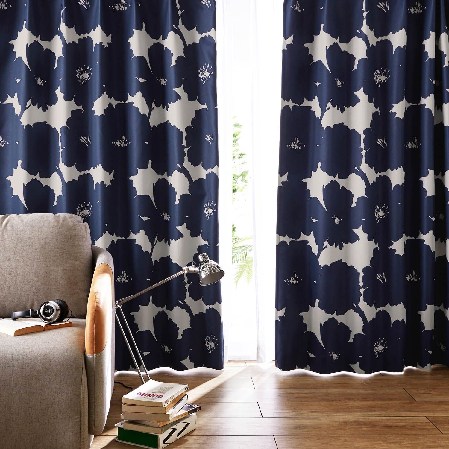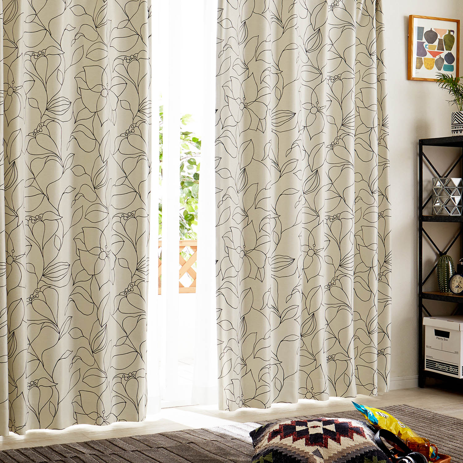 大胆にデザインされたモノクロフラワー柄が存在感抜群の遮光カーテンパッと目を惹く総柄アイテムが、お部屋におしゃれなアクセントをプラスします。遮光タイプは寝室にもおすすめ窓に合わせて選べる58サイズ展開です