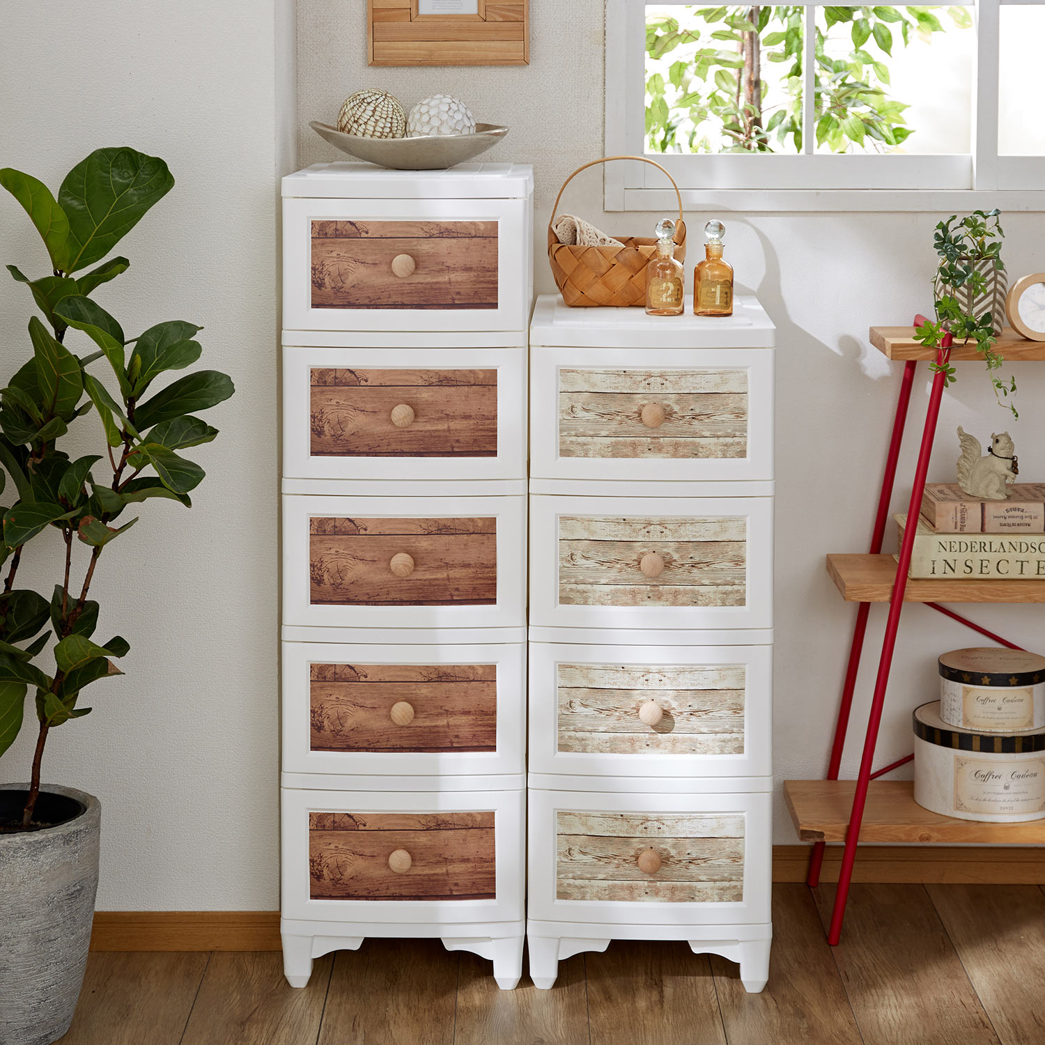 木目柄の衣類チェスト