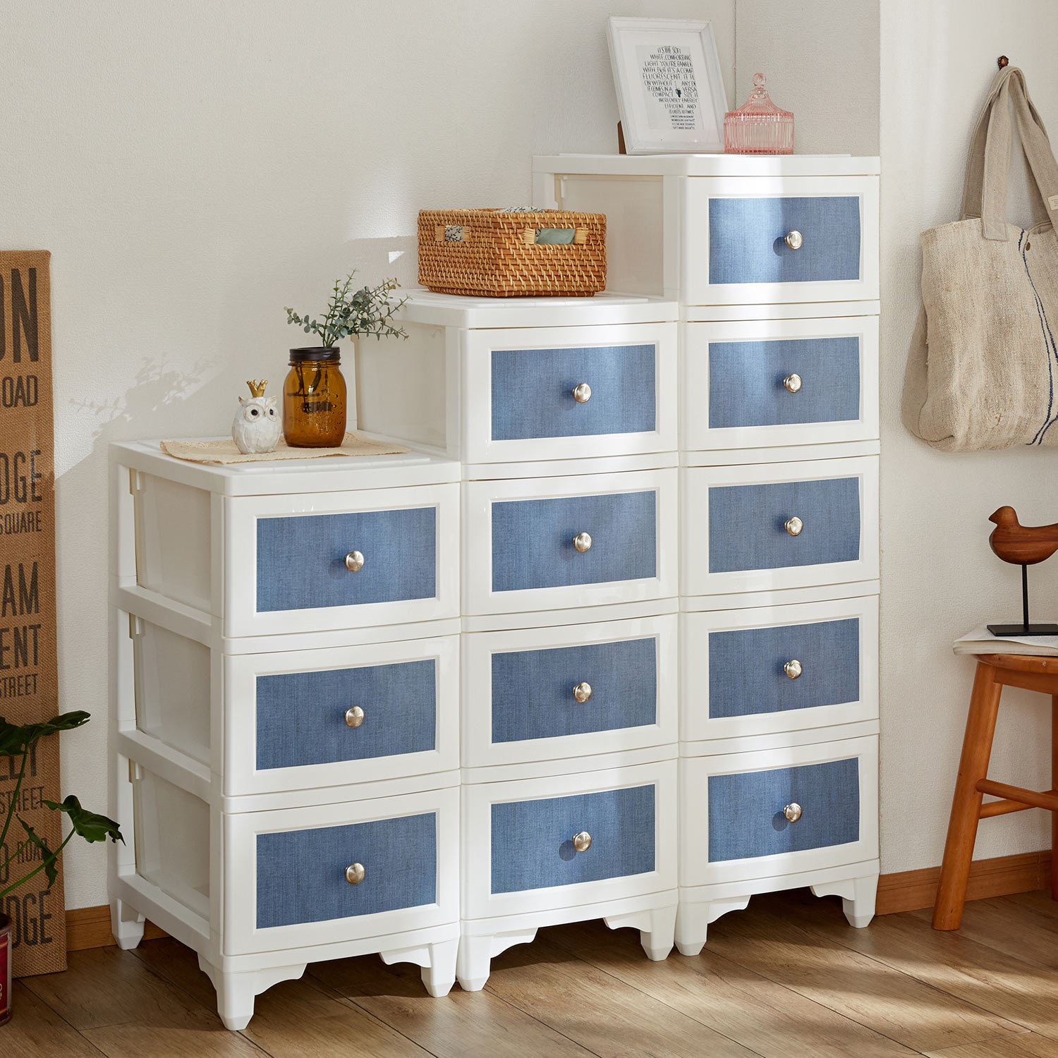 デニム柄の衣類チェスト