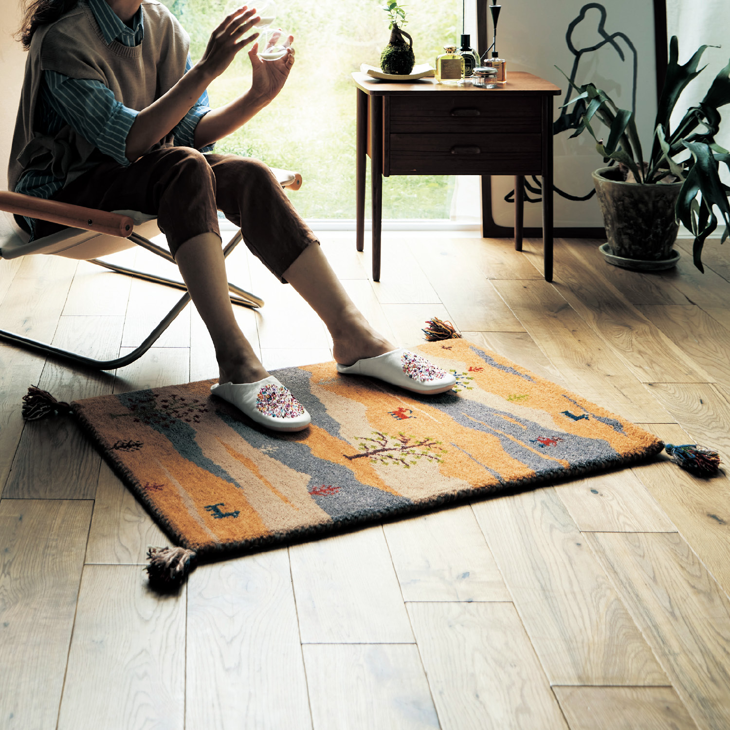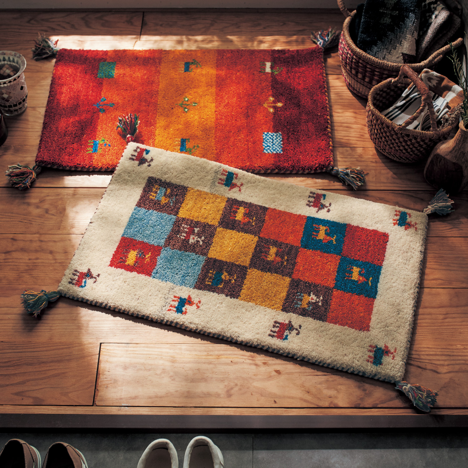 丁寧な手織り手法で、使うたび味わいが深化するウールマット「ギャッベ」目が詰まっており、気持ちいい踏み心地)