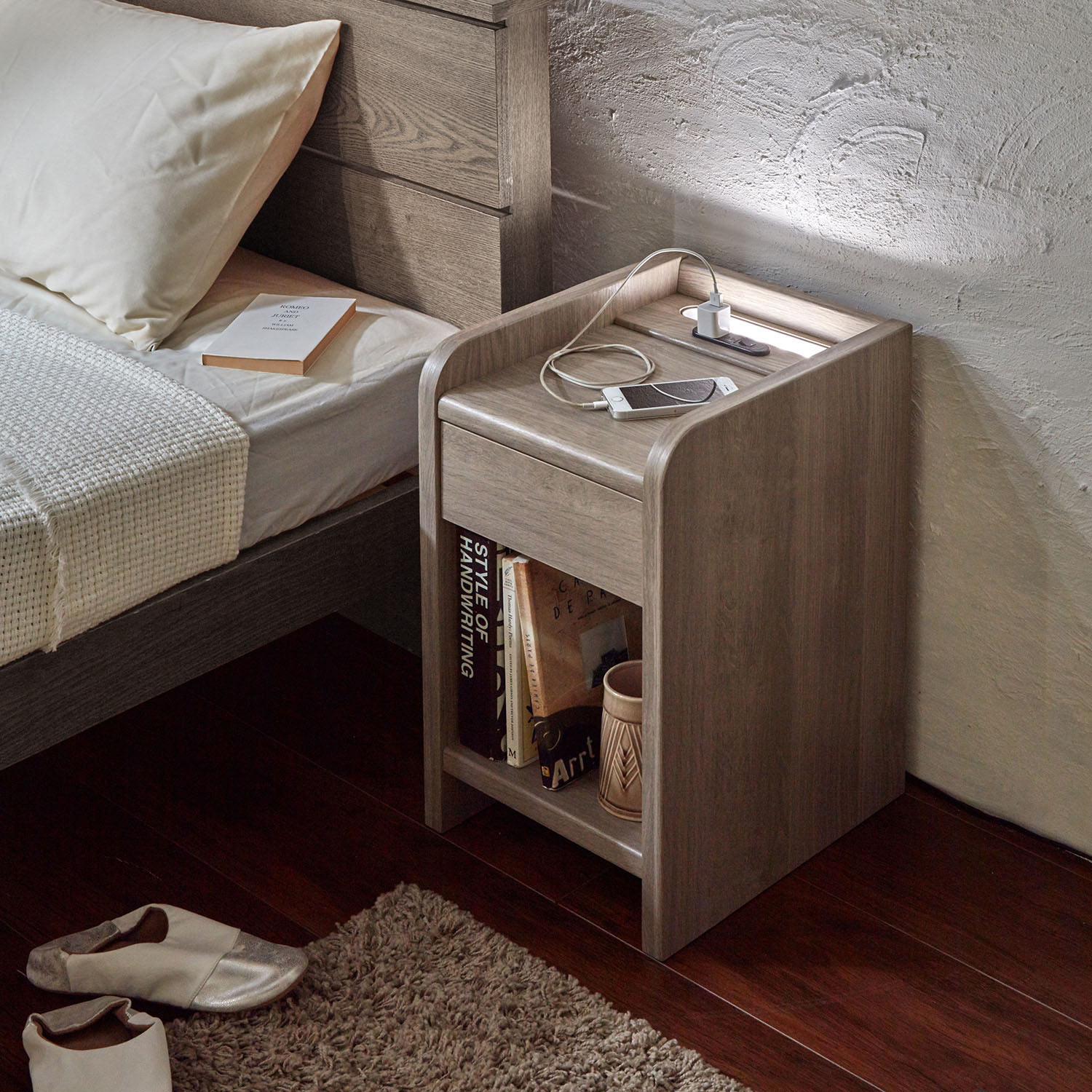 グレイッシュモダンなコンセント&照明付きベッドサイドテーブル