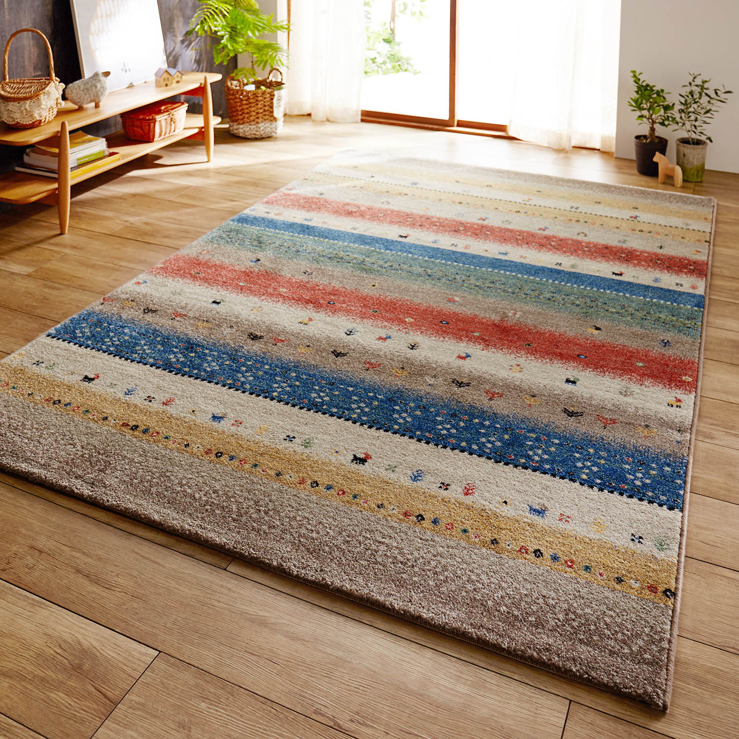 明るい色味の家具にも合わせやすい色合いがおしゃれ北欧ナチュラルな雰囲気ただよう、ギャッベデザインのウィルトン織りラグです密度のあるしっかりと踏み心地やずっと撫でていたくなるなめらかなタッチもポイント遊び毛が出にくいので日常使いにもぴったりですポップなカラーリングの「マルチ」と、さりげない色使いが目を惹く「グレー」の2色から、お好みでどうぞ