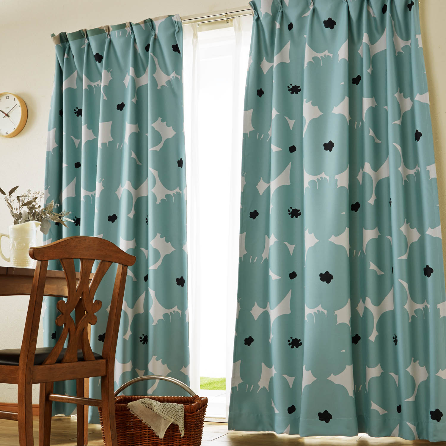 春を愛する北欧の人々の気持ちをそのまま表現したような、リズミカルなフラワー柄の遮光カーテンシンプルな北欧インテリアのアクセントにおすすめリビングはもちろん子供部屋にもおすすめ