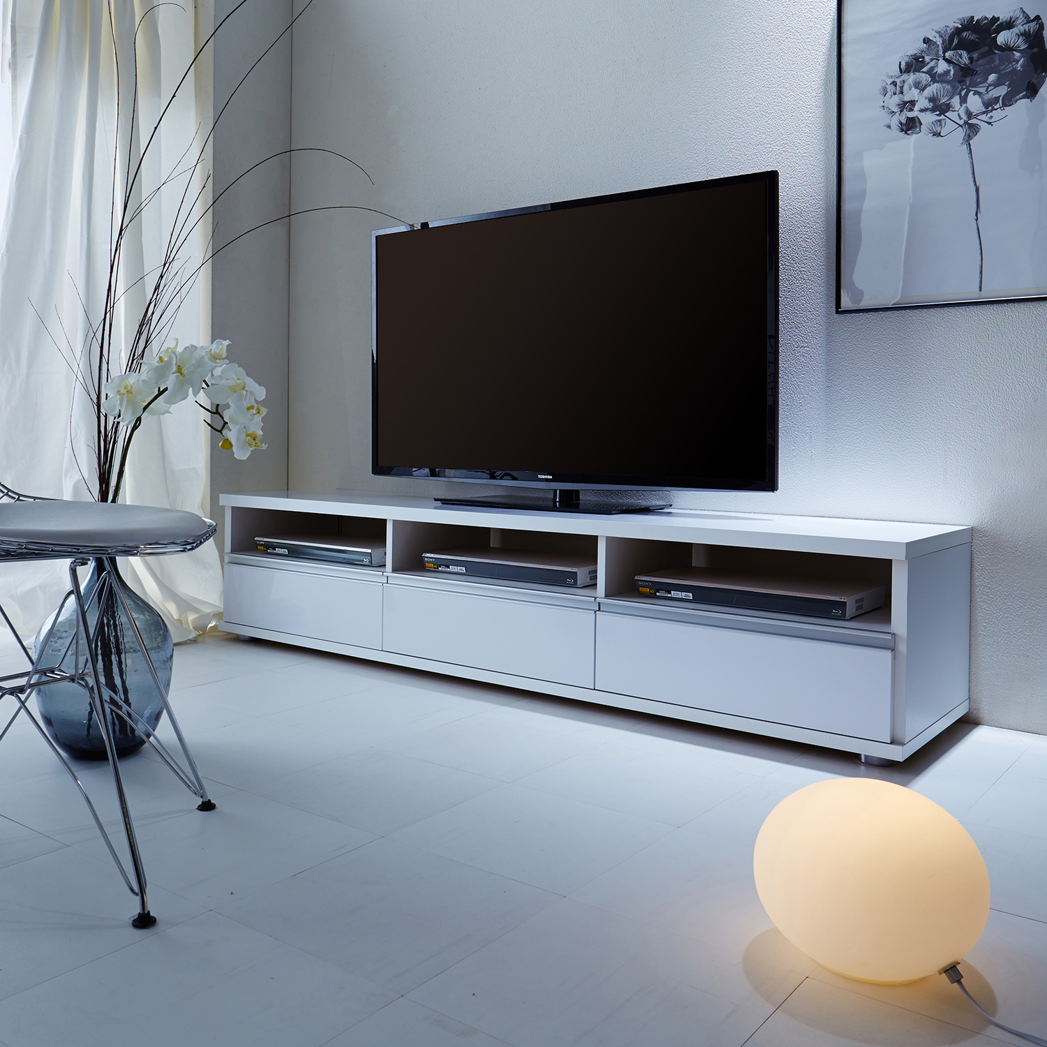 シルバーカラーの取っ手がモダンな表情を添える、シンプルなテレビ台どっしりとしたスクエアフォルムもデッキ収納部に抜け感を持たせることで、重すぎない佇まいに仕上げました背板を無くしたデザインは、配線もスムーズ下段にはDVDやCDの収納に便利な引出し付き清潔感のある「ホワイト」と、男前な「ブラック」の2色をラインナップお部屋のスペースに合わせて選べる4サイズ展開