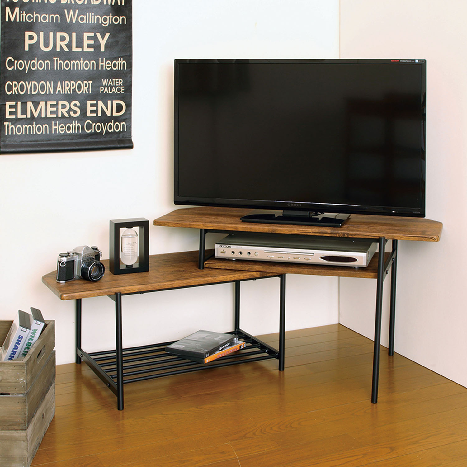 木目調×スチールの異素材使いがかっこいい存在感を放つ、コーナーテレビ台天板をスライドさせることで幅を80~131cmまで伸縮させることができるので、スペースや使い勝手に合わせてお使いいただけます。テレビ台として使うのはもちろん、ディスプレイラックとしてお気に入りの雑貨を飾るのにも大活躍男性インテリアやモダンなお部屋づくりにもぴったりです