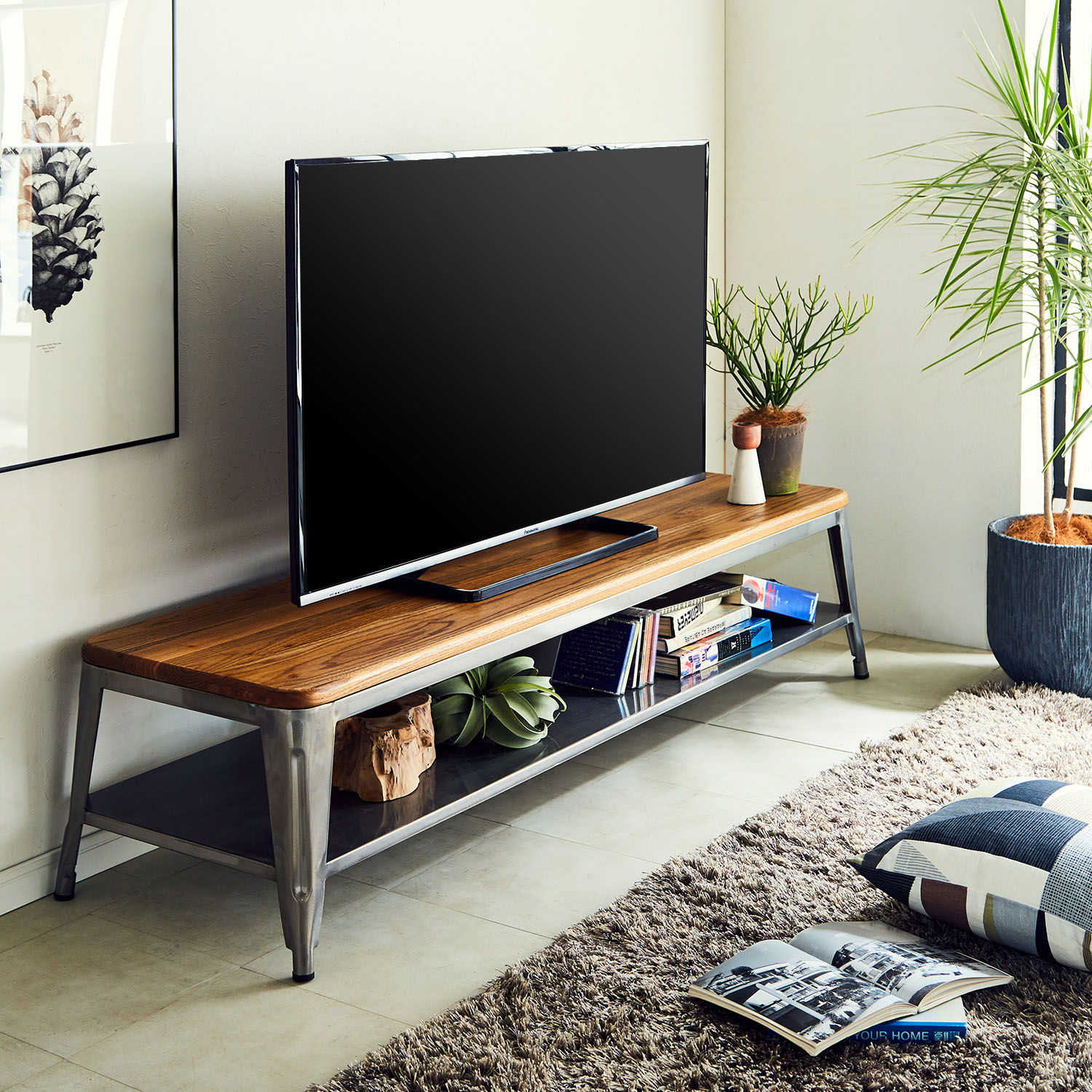 天然木エルム材と脚部の異素材使いがおしゃれなテレビ台すっきりとしたデザインながら、空間に存在感を添えるインダストリアル調デザインの佇まいが素敵ですスチール部分には濃淡やサビ跡、溶接跡などを施し、雰囲気たっぷりに仕上げています。テレビ台として使うのはもちろん、お気に入りの雑貨やグリーンなどを飾るディスプレイラックのように使ってもOK「幅120cm」と「幅160cm」の2サイズから、スペースに合わせて