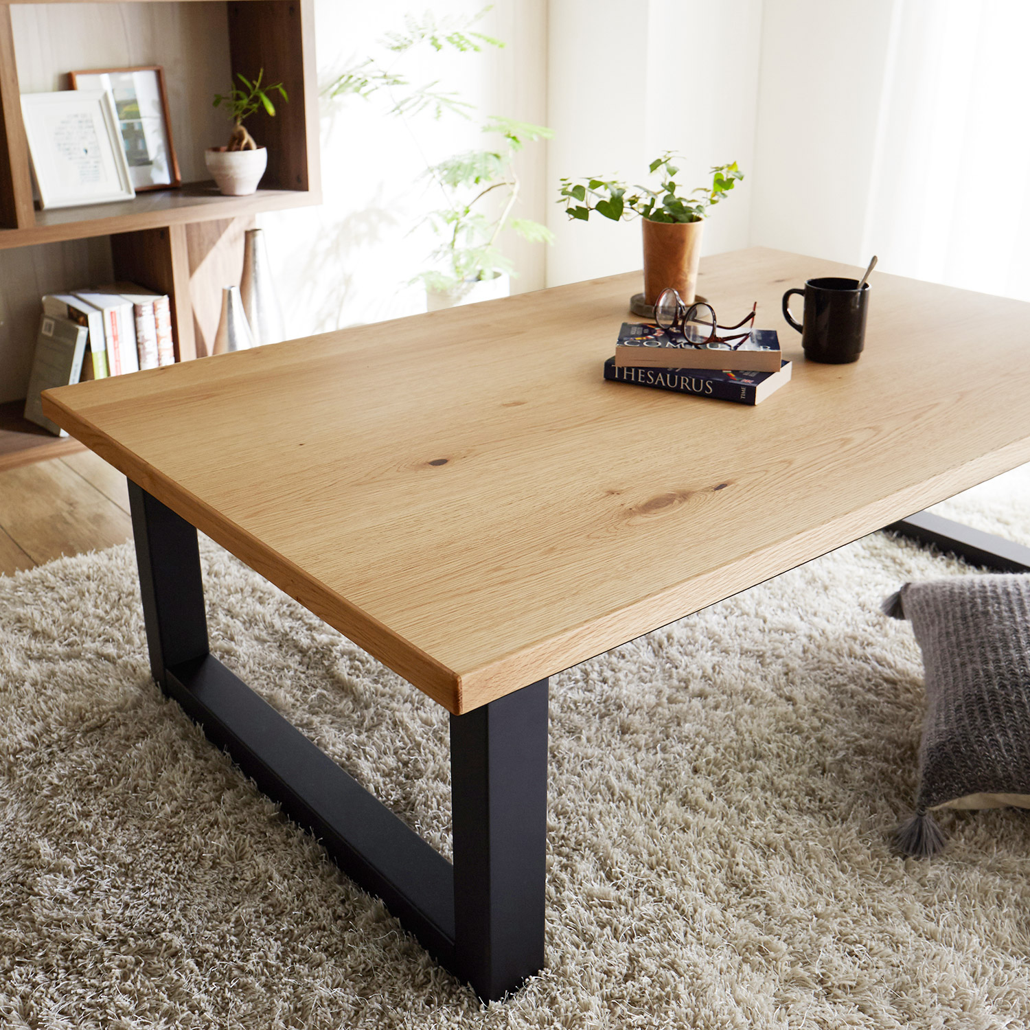 2パターンのデザインが楽しめるオーク材のこたつテーブル