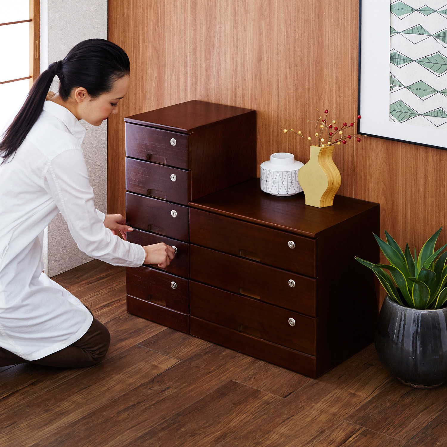 全段鍵付き!桐の多段チェスト